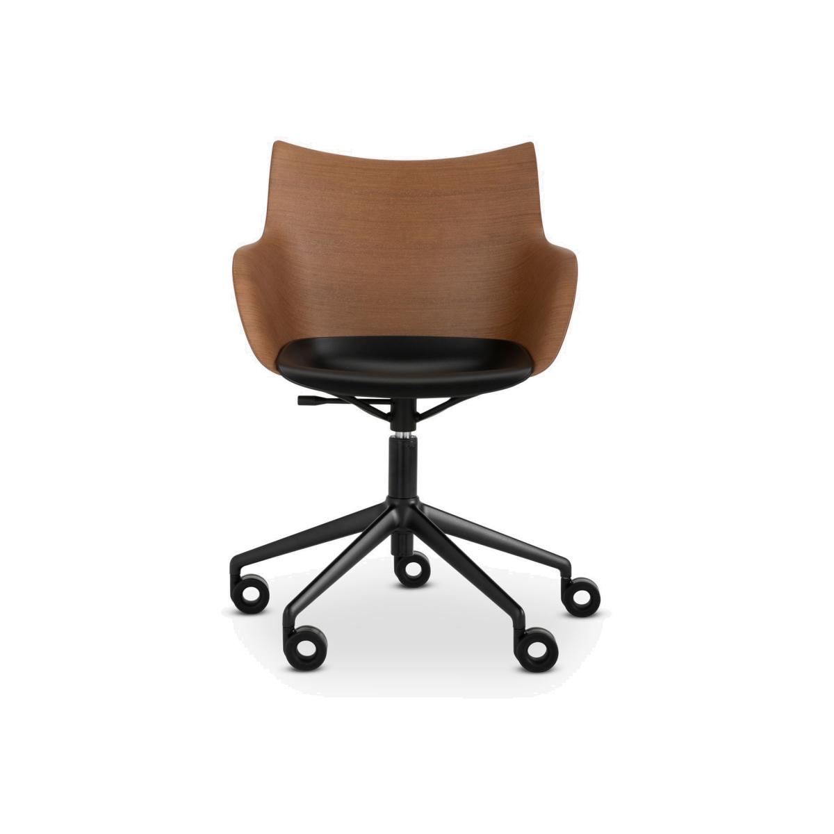 Kartell Philippe Starck Q/Wood Office Armchair, Dark Wood/Black/Black