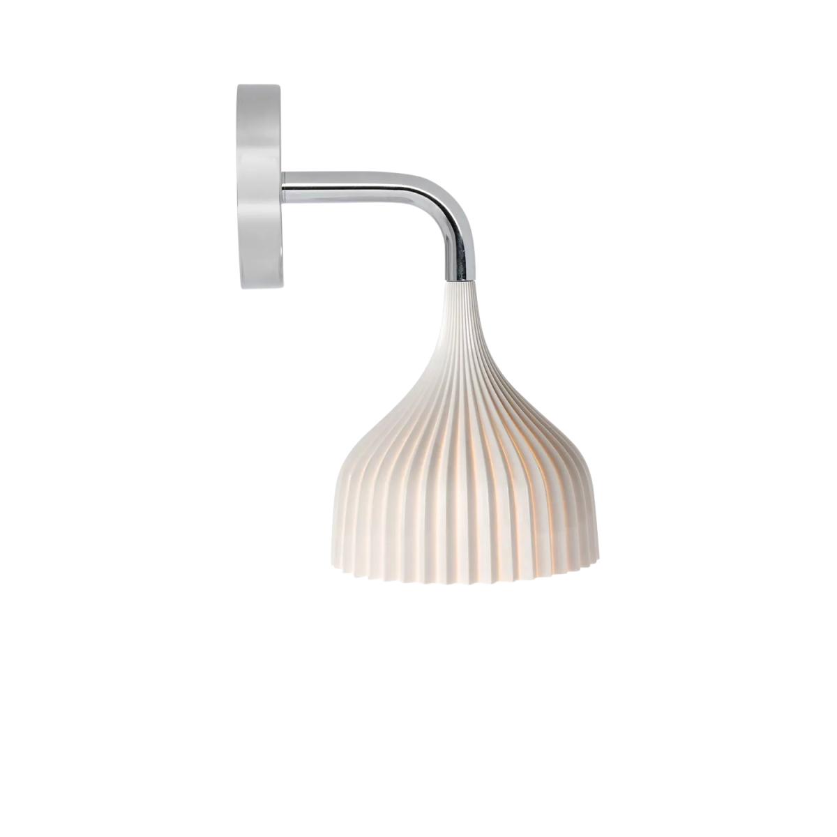 A contemporary take on traditional lighting, this wall light has a sconce with a rosette lampshade in a pleated design with an 11cm chrome arm.