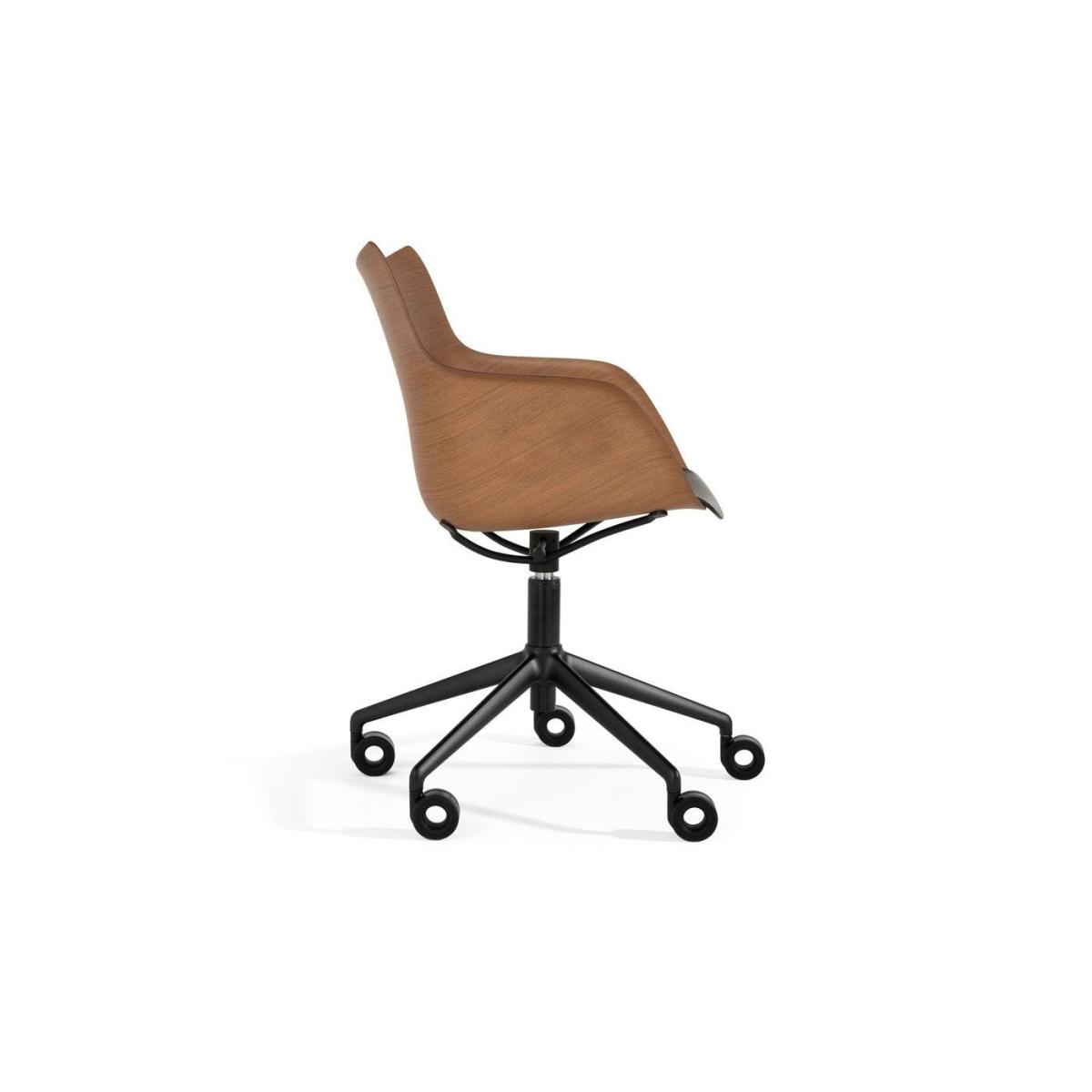 Carved using Smart Wood technology, sustainability and exquisite design is what defines this armchair by Kartell. Ushered in by the Italian designer, this Q/Wood Office Chair is part of the “Kartell Loves the Planet” project. Using patented Smart Wood technology, this stunning piece is almost entirely crafted from a fine layer of dark wood. Flowing in a single form with pronounced curves, this chair is supported by a 5 star steel base.