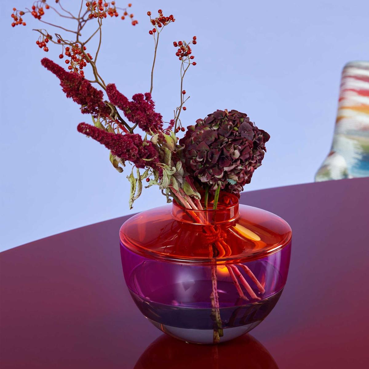 The Shibuya vases feature a unique pierced lid, allowing them to transform from purely decorative objects into functional table accessories. This innovative design enhances their versatility, making them perfect for both aesthetic display and practical use. The Shibuya vases, with their vibrant colors and modern lines, seamlessly blend style and functionality, adding a dynamic touch to any interior setting. Whether used as vases or table accessories, they bring a contemporary flair to your home decor