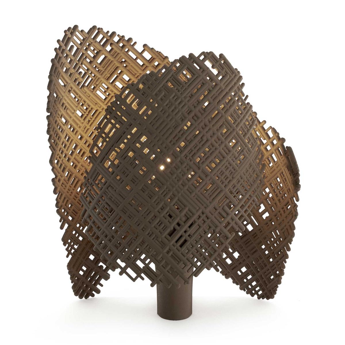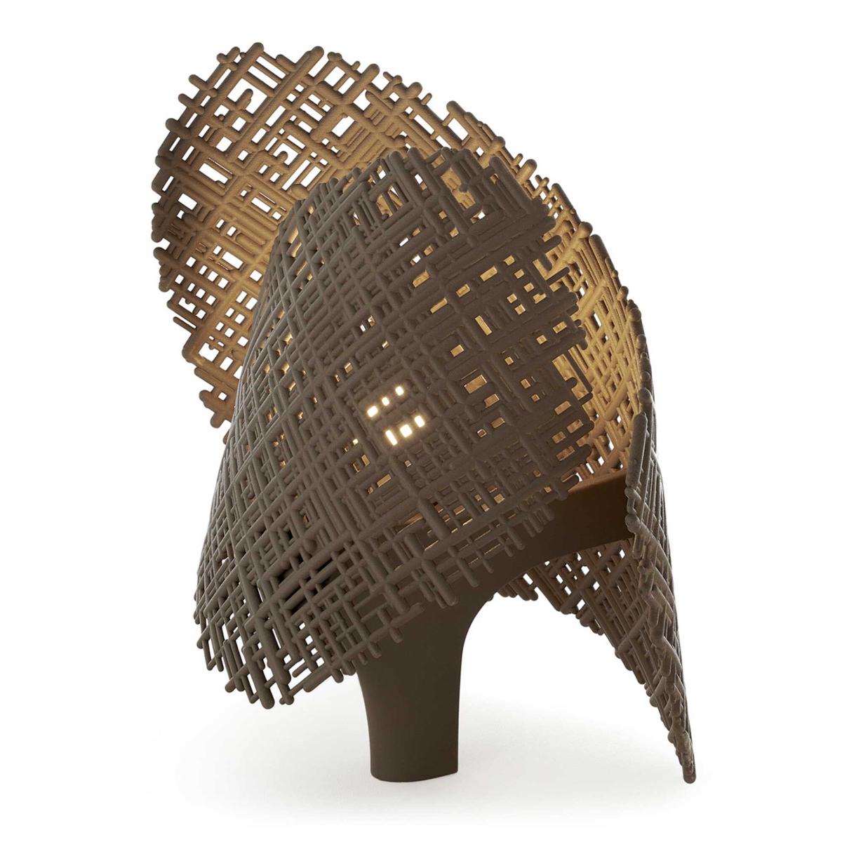 Tea Table Lamp is an abstract form with an artisanal touch, resembling two hands cupping a light and allowing irregular beams to escape, creating a chiaroscuro effect that casts shadows on the wall. Its innovative design features an irregular, porous texture that gives it a natural finish, reminiscent of terracotta or ceramic biscuit. Available in basic colors such as white, anthracite, terracotta, and grey-brown, Tea demonstrates that exceptional, poetic objects can be crafted from recycled materials. It is made from recycled thermoplastic technopolymer