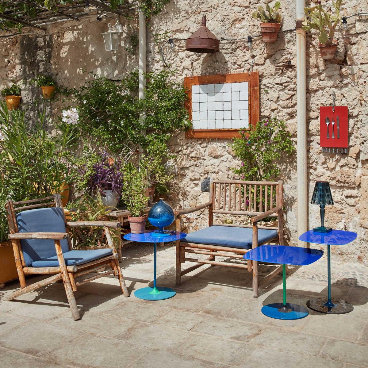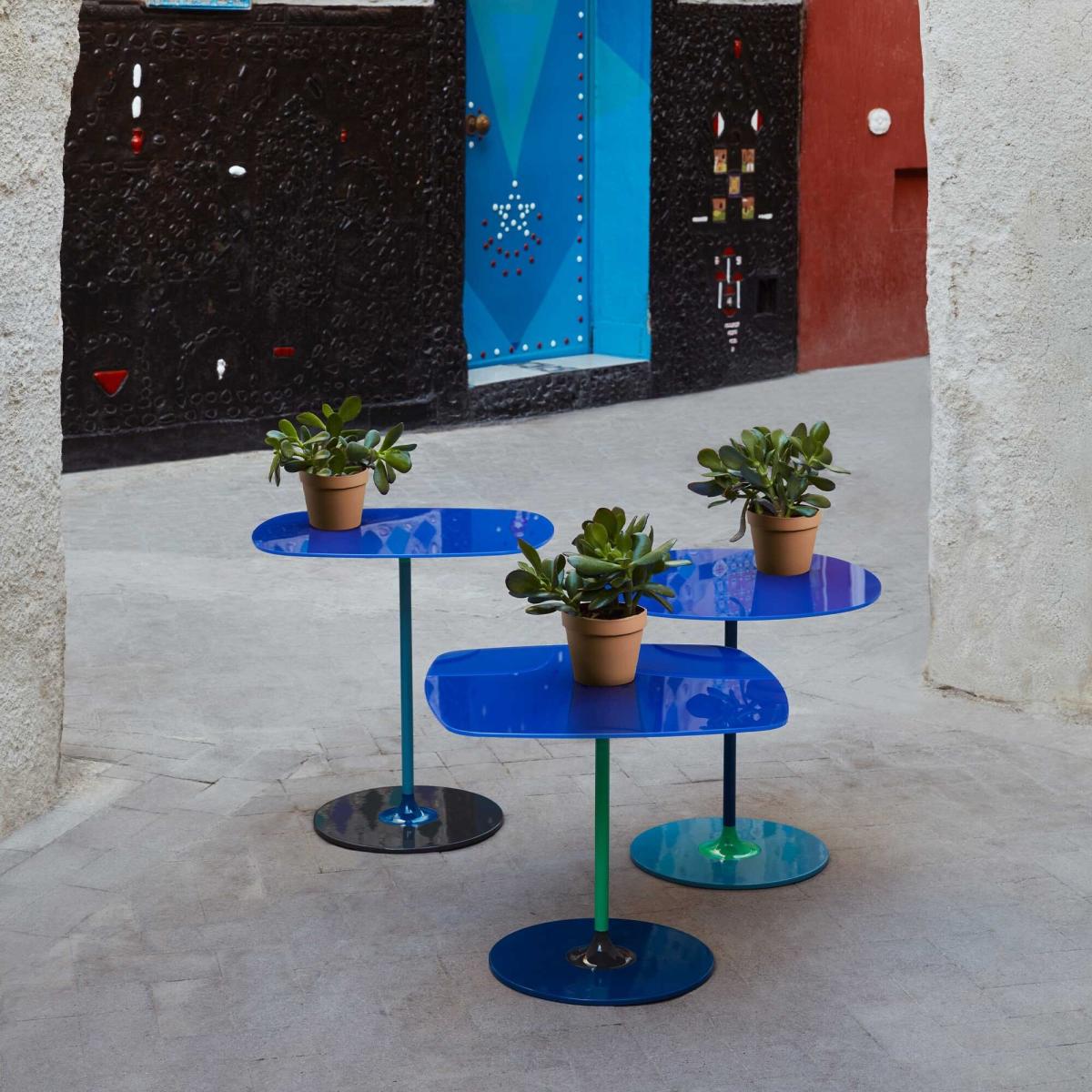 Kartell Thierry Set 3 Side Tables H40+H45+H50 Blue Glass | Barker & Stonehouse