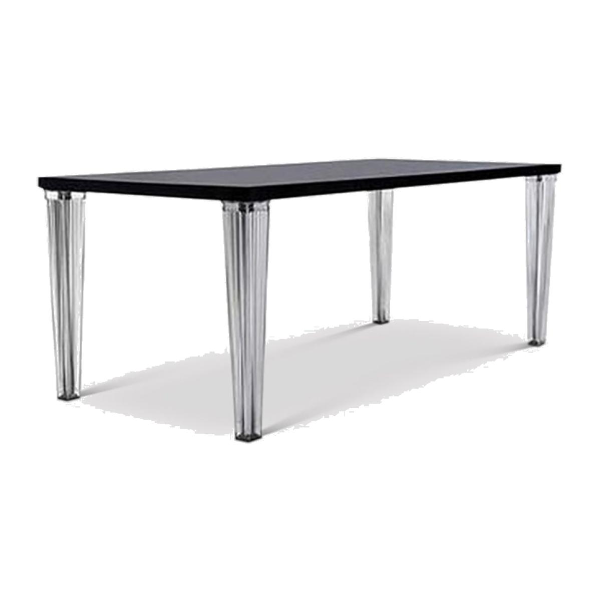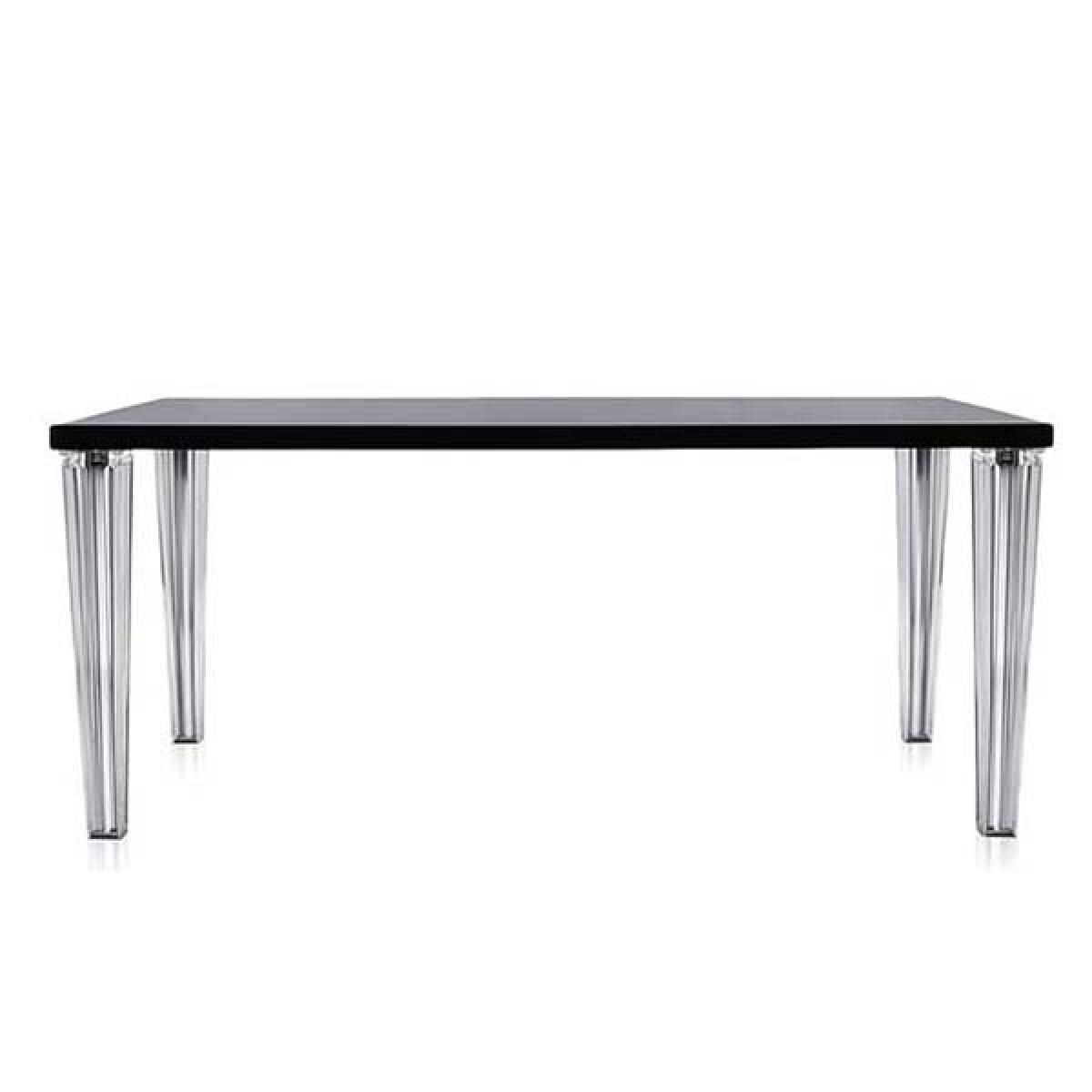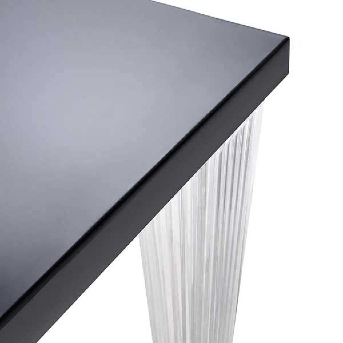 This designer dining Top Top table is a gorgeous piece from Kartell and Phillippe Strack. Its glossy and transparent surface compliments its stylish transparent legs with a metal core. This stunning table will look fantastic in a dining or living area and is even suitable for outdoor use. The minimal and elegant lines of the Top Top will make it a welcome addition to any modern and contemporary home and its use of materials makes it versatile and suitable for many uses.