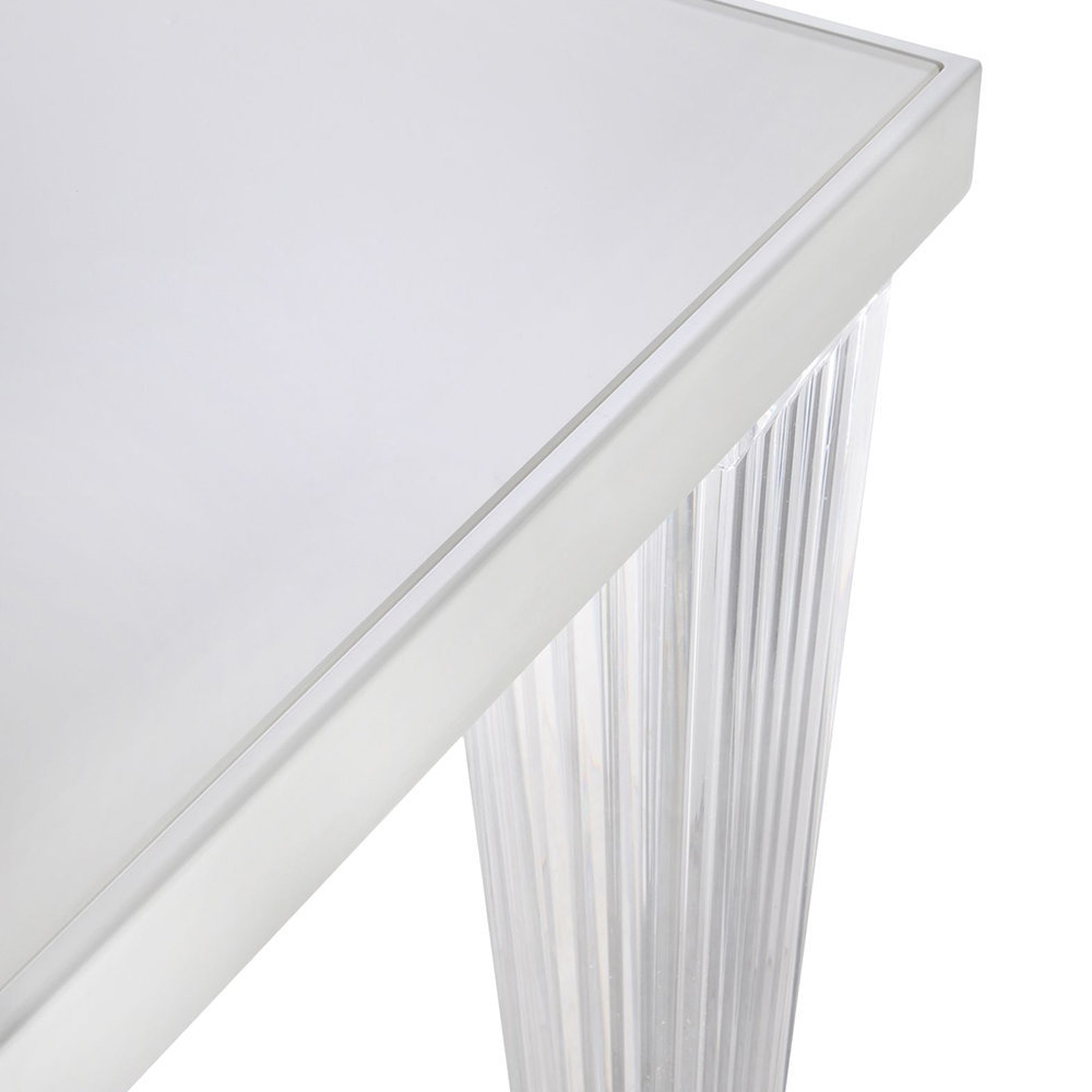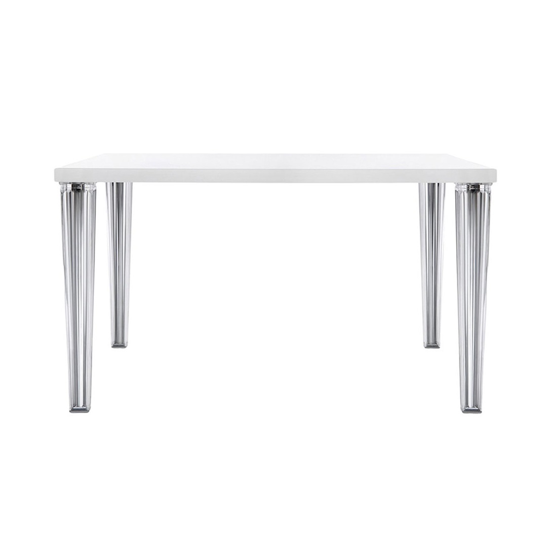 Keep it contemporary in the home with this Toptop dining table from Kartell. Designed by Philippe Starck and Eugeni Quitllet, this table has a bright white glass top and a classical pillar inspired clear PMMA legs. It’s modern meets traditional design at its finest.