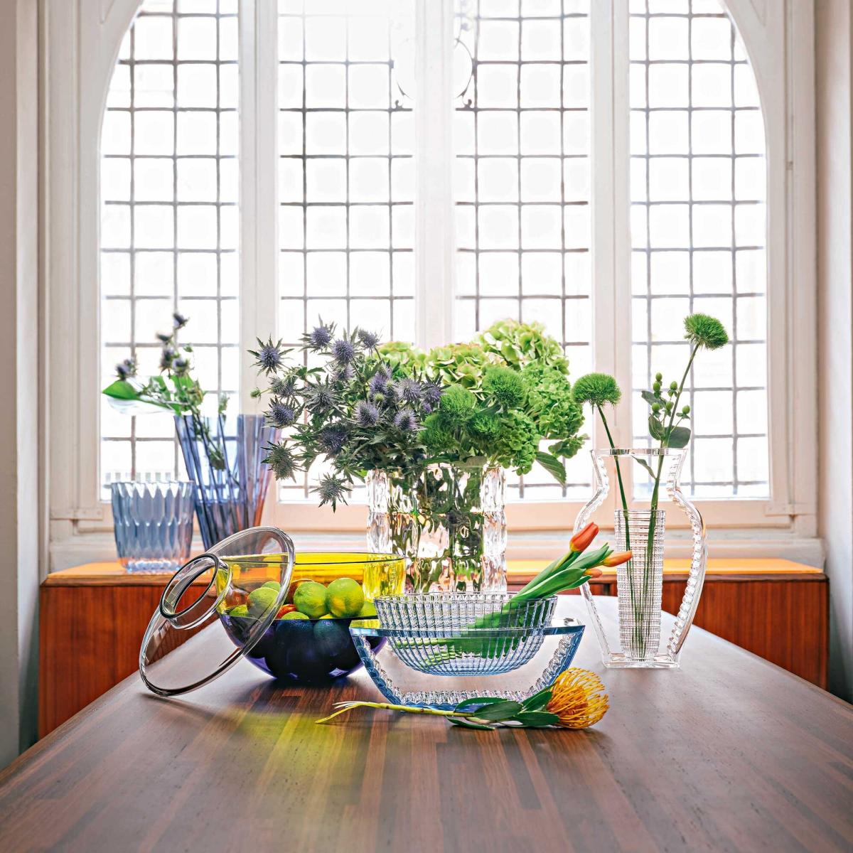 This decorative vase collection includes both a vase and a table centrepiece, notable for its refined geometric shapes and art deco influences. Each piece boasts sleek contours and elaborate patterns, embodying the spirit of the art deco period. These vases enhance any space with a touch of elegance and sophistication, making them perfect for both contemporary and traditional decor