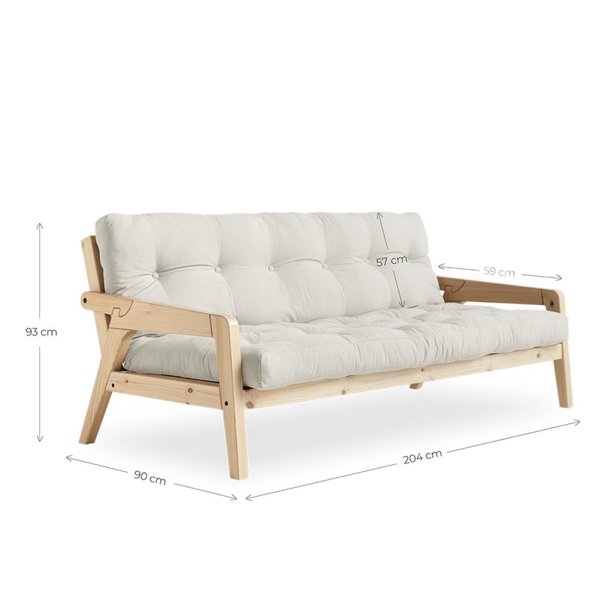 If you're a lover of smart and multi-functional furniture design, take a seat on the Karup Design Grab Sofa Bed and appreciate it's mastery! Giving you the option of a spare bed and taking you from day to night; relax and unwind on the plush cushioned seating with charming buttoned details and when evening rolls around the elegant armrests unhook to become the legs of a double bed. Simple in design, but oh-so satisfying to witness; guests will 'ooh and aah' as the futon transforms infront of their eyes! Expertly crafted from sustainably sourced Scandinavian pine wood and planed to perfection, choose your fabric upholstery and style in the living room, home office or guest-bedroom and get more from your space.