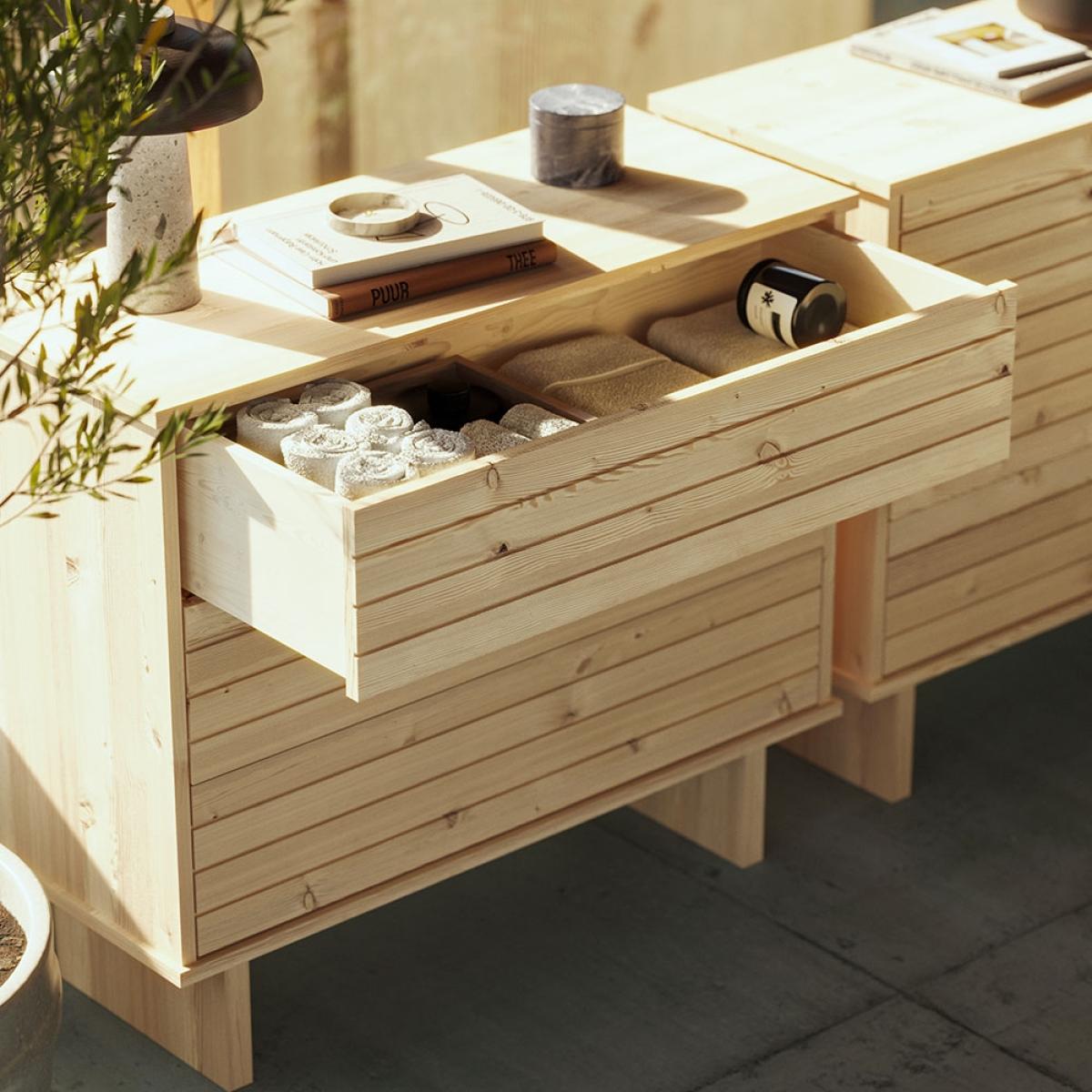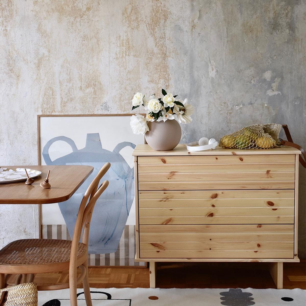 Floating above board legs, the Karup Design Kommo Chest Of Drawers has been thoughtfully curated and crafted. Compact on the outside, spacious on the inside - the deep drawers provide plenty of storage space. Removing the need for handles, creating a clean and minimalistic aesthetic, the push-to-open drawers save extra space and keep things simple! Made from responsibly sourced Scandinavian pine and expertly milled, the horizontal grooves enhance the woods natural characteristics. Perfect in the bedroom, home office, dining room or kitchen - as you're tidying away you might find yourself idling for longer, admiring every side, line and surface of the Karup Design Kommo Dresser.