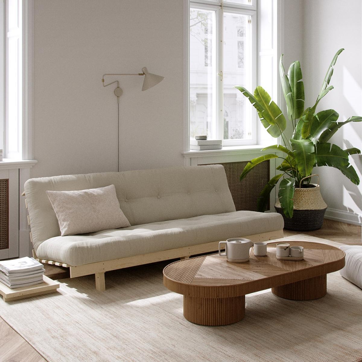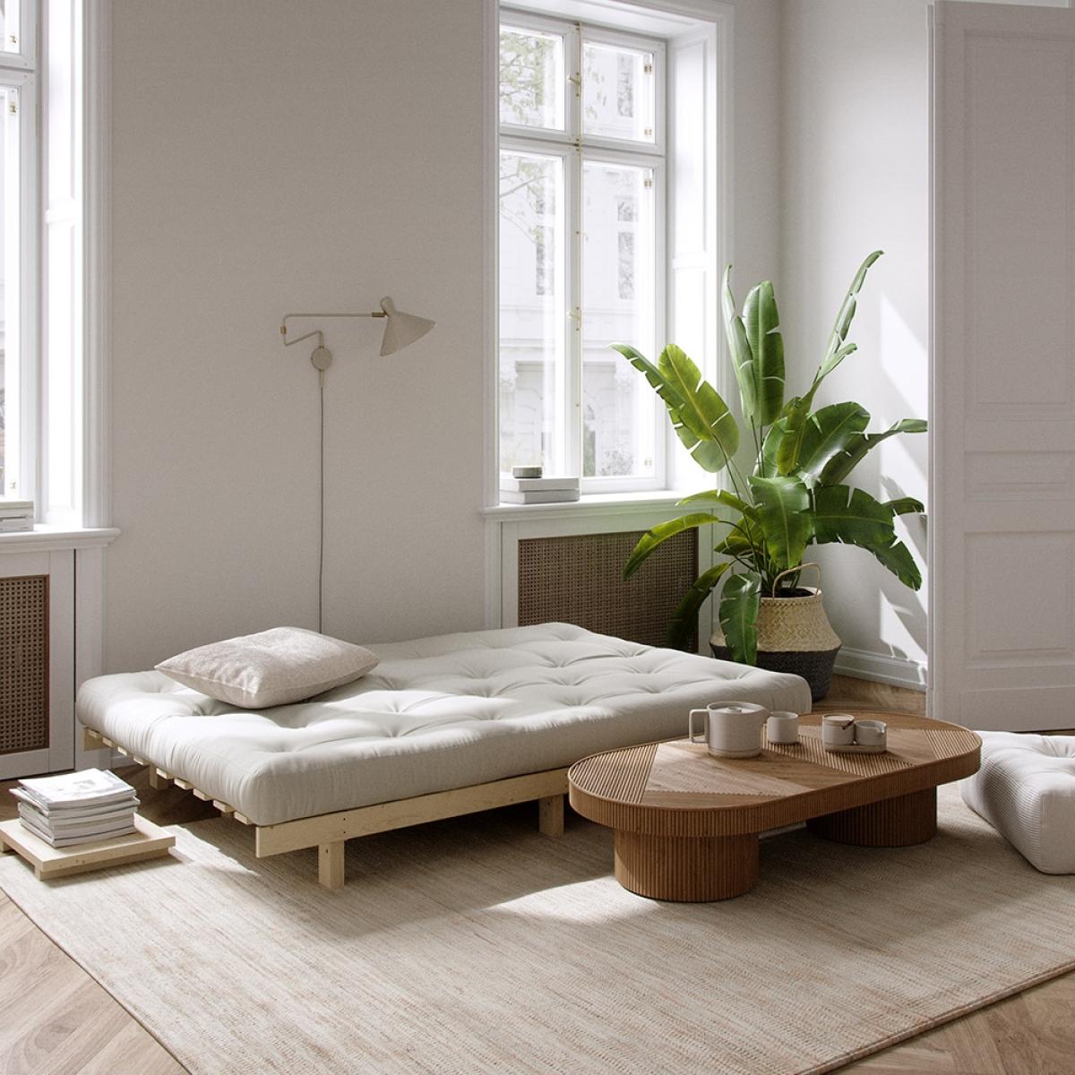 Alternate from sitting to sleeping whenever you choose with the Karup Design Lean Sofa Bed. In one swift adjustment, easily lower the seat back to create a full sized double bed for day-dreaming, catnapping and putting friends and family up for the night. And when your guests have departed, just as easily transform the futon back into a sofa and save on floor space! But not before you've treated yourself to a doze on the plush upholstered mattress. Available in a choice of coloured fabrics, the buttoned upholstered seating has been paired with a planed wooden frame made from sustainably sourced pine. Suited to sitting rooms, home offices, spare bedrooms or garden retreats, get more from your home with the Karup Lean Sofa Bed.