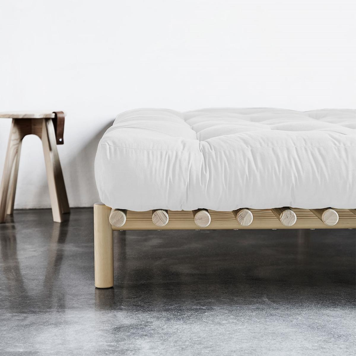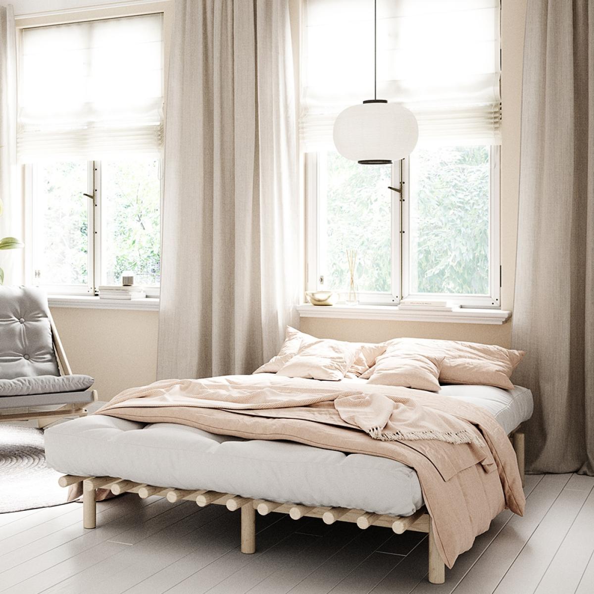 The Karup Design Pace Bed perfectly pairs Japanese and Scandinavian aesthetics, encouraging you to rest, relax and slow things down. Not your average, everyday bed frame - crafted from beautiful, sustainably sourced pine and expertly smoothed and sculpted to create it's unique silhouette, the Pace beds form mirrors the natural materials used. The long beams and low design offer support and promote air circulation to keep you comfortable and cool while you recline. And when you're cool you'll enjoy a deeper and restorative sleep and wake feeling ready for the day! Available in a choice of sizes, pair with coordinating bedding and soft accessories to create a tranquil space to pause!.