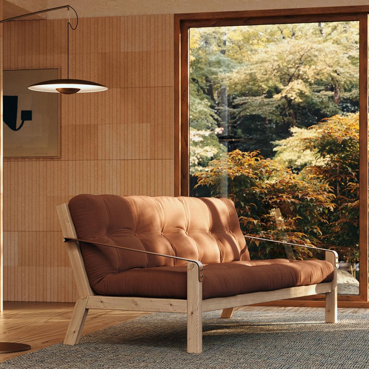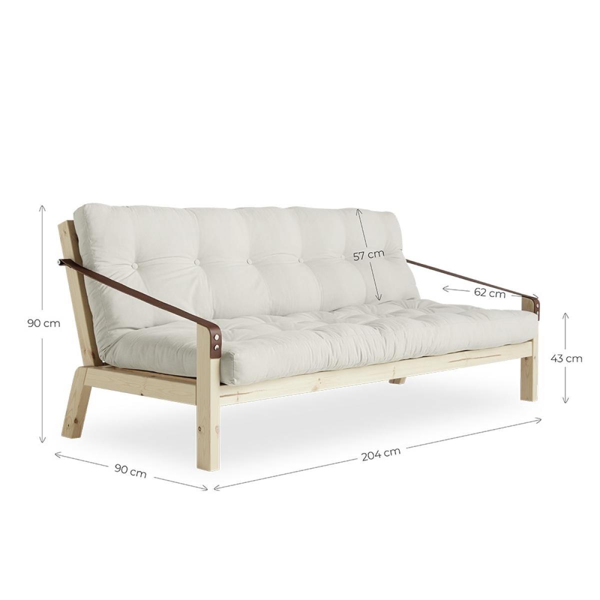 Thoughtfully designed and crafted; the Karup Design Poetry Sofa Bed transforms from seat to bed in one smooth motion. Holding the structure in place - the leather strap armrests support the seat back while you relax and when a double bed is needed, simply unhook at the sides for extra stretching out space. A great choice for spare bedrooms, make better use of your home and give guests the five star treatment they deserve. The smooth, planed structure has been shaped from sustainably sourced pine wood with a coordinating upholstered futon mattress available in a choice of colours. Marrying Japanese and Scandinavian styles, the buttoned details and unique characteristics make the Poetry Sofa Bed one of a kind!.