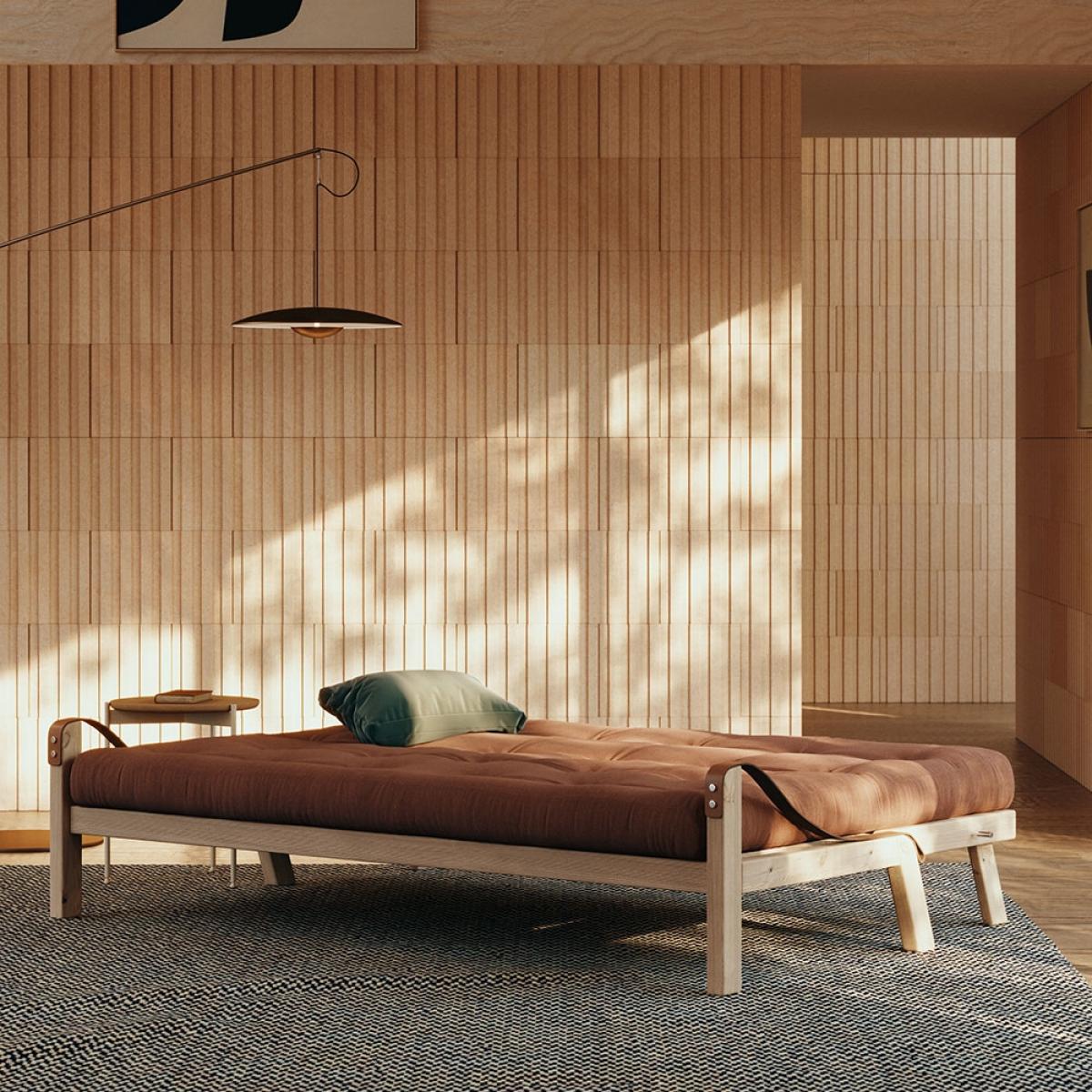 Thoughtfully designed and crafted; the Karup Design Poetry Sofa Bed transforms from seat to bed in one smooth motion. Holding the structure in place - the leather strap armrests support the seat back while you relax and when a double bed is needed, simply unhook at the sides for extra stretching out space. A great choice for spare bedrooms, make better use of your home and give guests the five star treatment they deserve. The smooth, planed structure has been shaped from sustainably sourced pine wood with a coordinating upholstered futon mattress available in a choice of colours. Marrying Japanese and Scandinavian styles, the buttoned details and unique characteristics make the Poetry Sofa Bed one of a kind!.