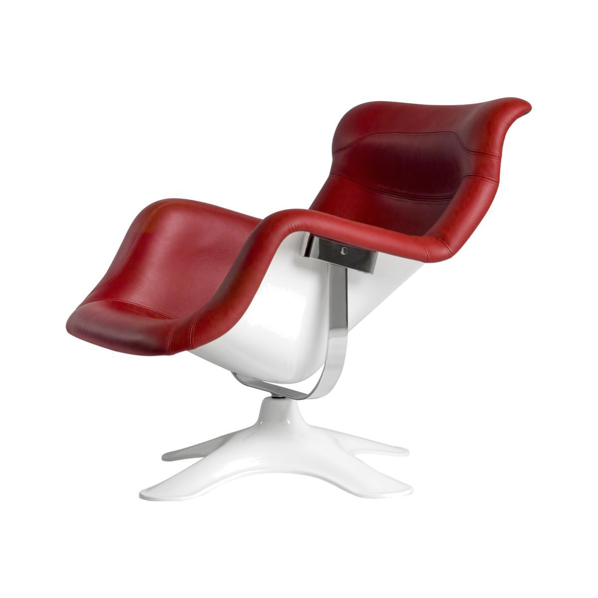 The result of numerous experiments on how snow moves around you when you sit in it, not to mention our founder Sir Terence Conran’s favourite chair, the Karuselli Lounge Chair and Ottoman is a contemporary design classic by Yrjö Kukkapuro. Originally designed in 1964, the story behind the chair’s conceptualisation is an interesting one; Kukkapuro designed the chair after playing outside with his daughter making snow chairs, when he realised the snow perfectly surrounded the contours of the human body. “It’s the most comfortable chair in the world… I lie back in it with a glass of whisky and a cigar and immediately feel that life is worth living. ” -. Sir Terence Conran. Available in a selection of red, brown or black Prestige Leather upholsteries with white fiberglass shells, the Karuselli Chair is an ergonomic form that envelops you as you sit, while the accompanying ottoman makes the ideal companion, with complementary ergonomics and generous padding. With both swivel and rock capabilities, the Karuselli Chair moves with you. Finnish furniture designer Yrjö Kukkapuro is a central figure of Finnish functionalism who prioritised sense and function first and foremost in his creations. This characteristic is exemplified by the Karuselli Lounge Chair and Ottoman Set, which is equally ergonomic and artful and would make a timeless addition to your home.