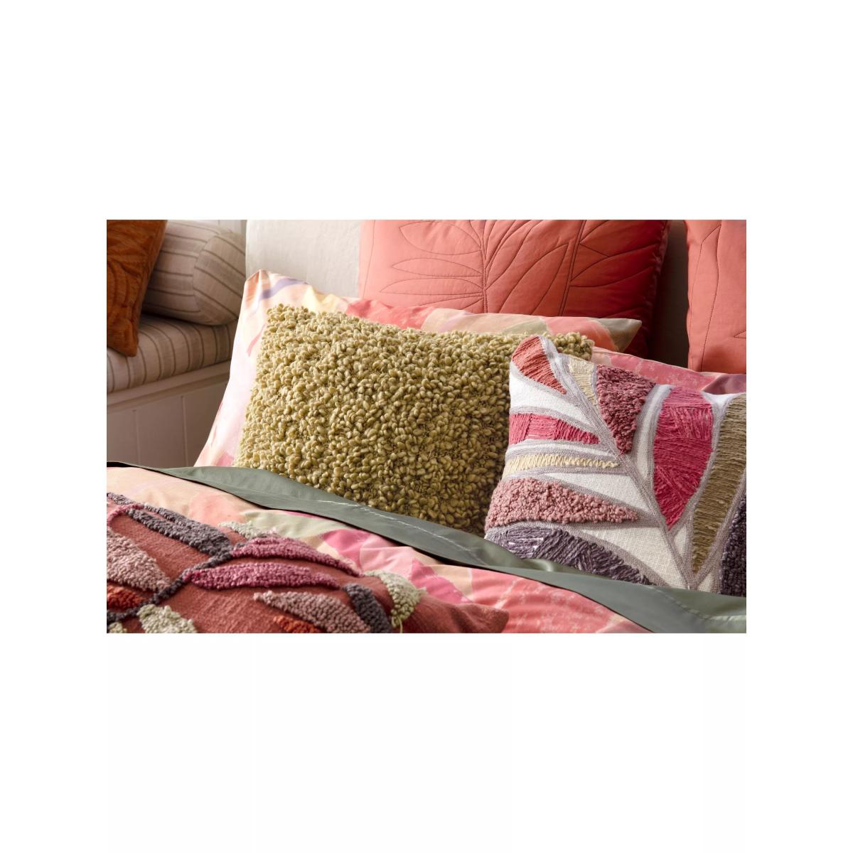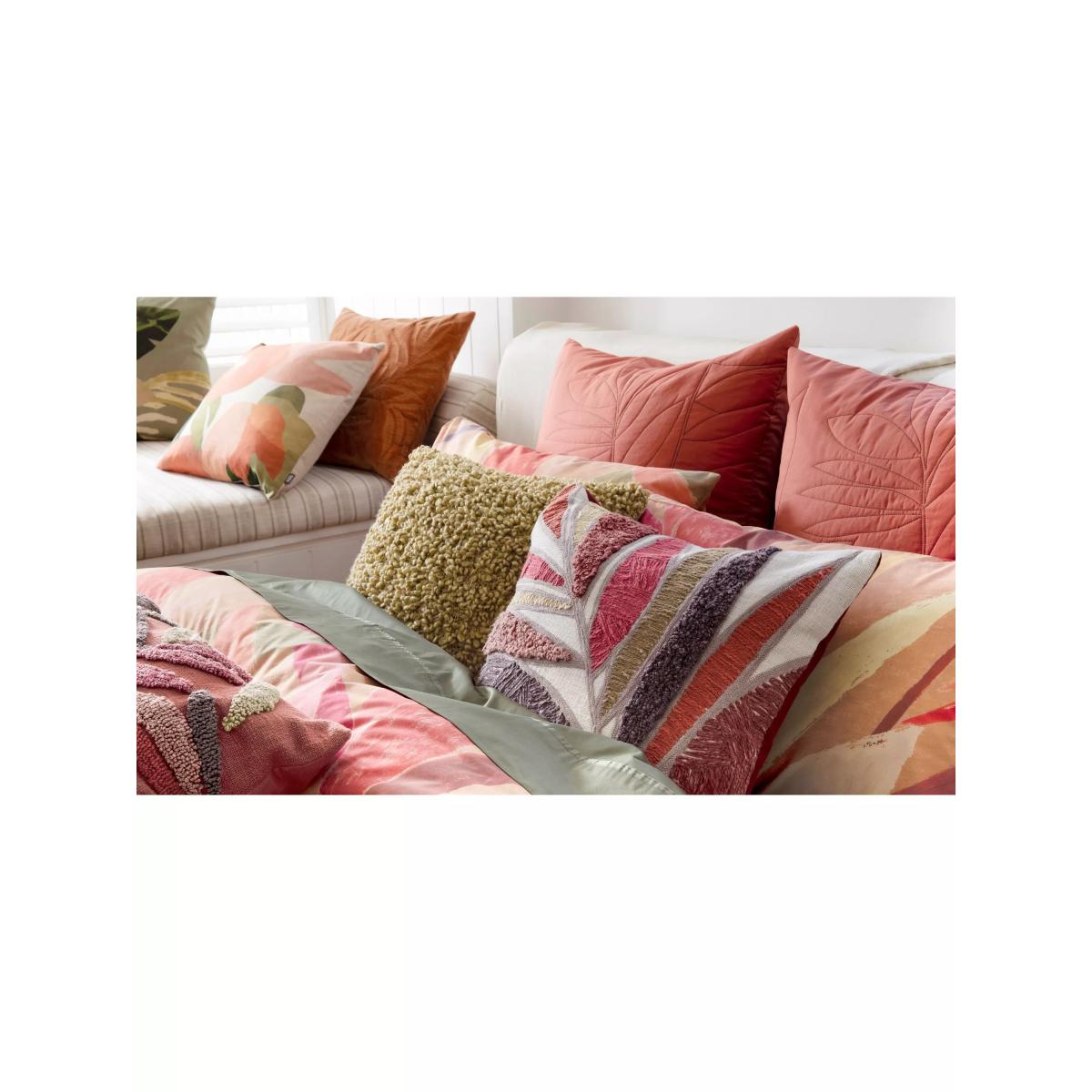 A tropical statement piece with a subtle retro feel, the Alberto quilt cover set is destined for high impact. Its bold, hand-painted leaf design in bright colours playfully sits across the cosiest cotton. All sizes come with 2x standard pillowcases. Bedding sizes To fit duvet/pillow size (cm) Standard pillowcase, L75 x W50cm Double duvet cover, L200 x W200cm King duvet cover, L220 x W225cm Super king duvet cover, L220 x W260cm