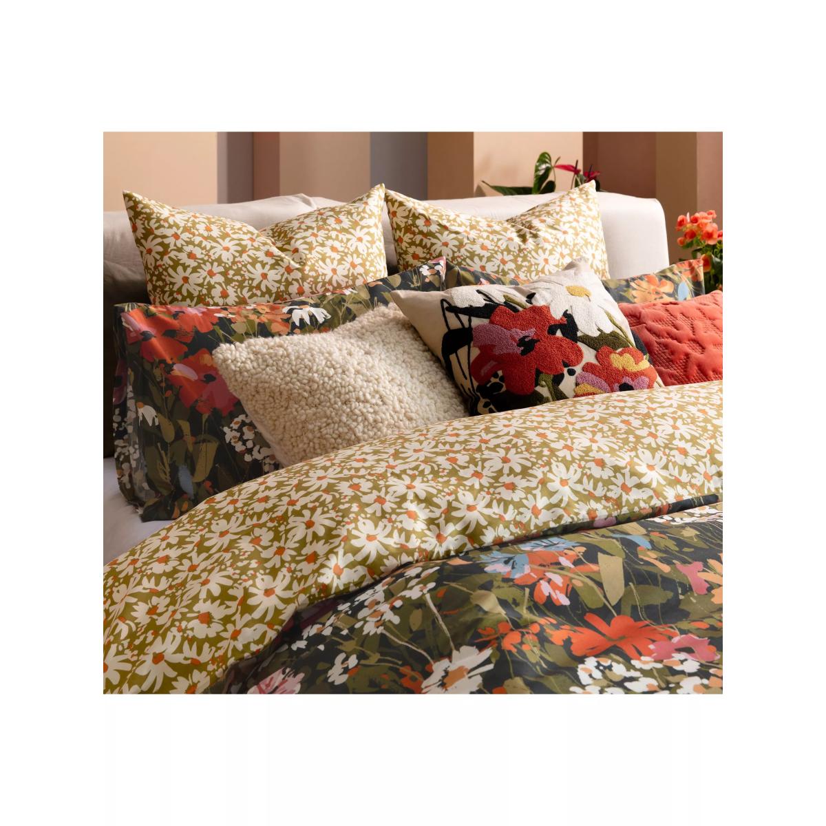 Bursting with detail, the soft cotton Fresca quilt cover set is a canvas of sprawling wildflowers in bright tones. In delightful contrast, the reverse features a simpler abstract wildflower pattern for a fun finish. All sizes come with 2x standard pillowcases. Bedding sizes To fit duvet/pillow size (cm) Standard pillowcase, L75 x W50cm Double duvet cover, L200 x W200cm King duvet cover, L220 x W225cm Super king duvet cover, L220 x W260cm