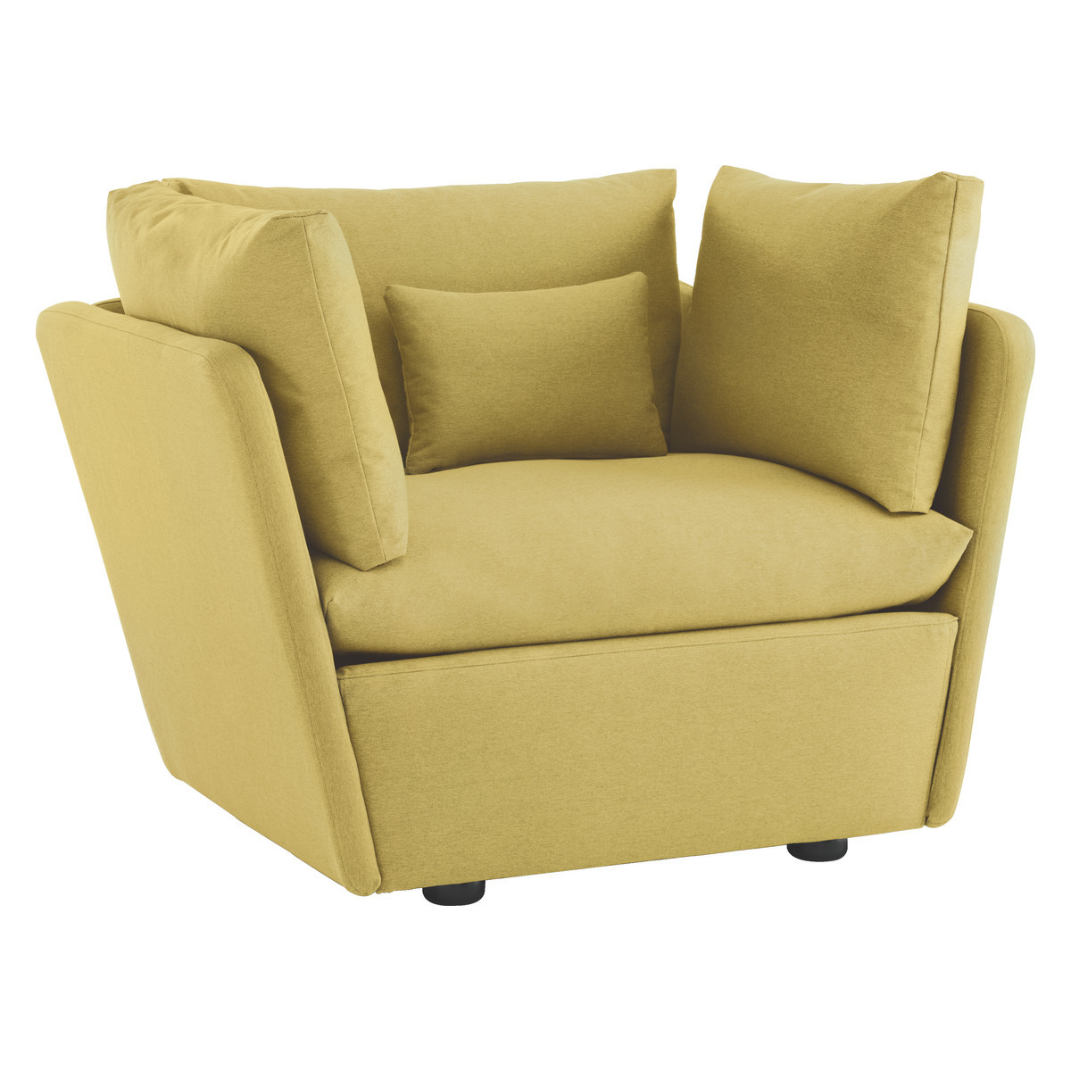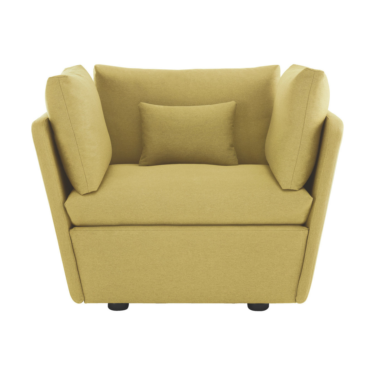 Designed exclusively for Habitat, the Kasha yellow armchair features a structured, contemporary frame with low seating, offset by soft feather and fibre cushions. The Kasha range is upholstered in a smart removable fabric cover and offers a cool, pared back lounge look that's open and inviting Made in Europe and part of the Kasha modular sofa range, available in various sizes, fabric and colour options.