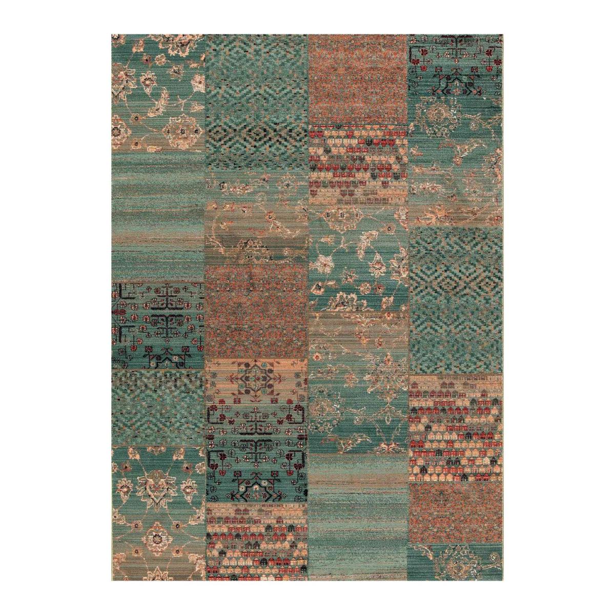 Kashqai Patchwork Patterned Green Rug 135cm x 200cm