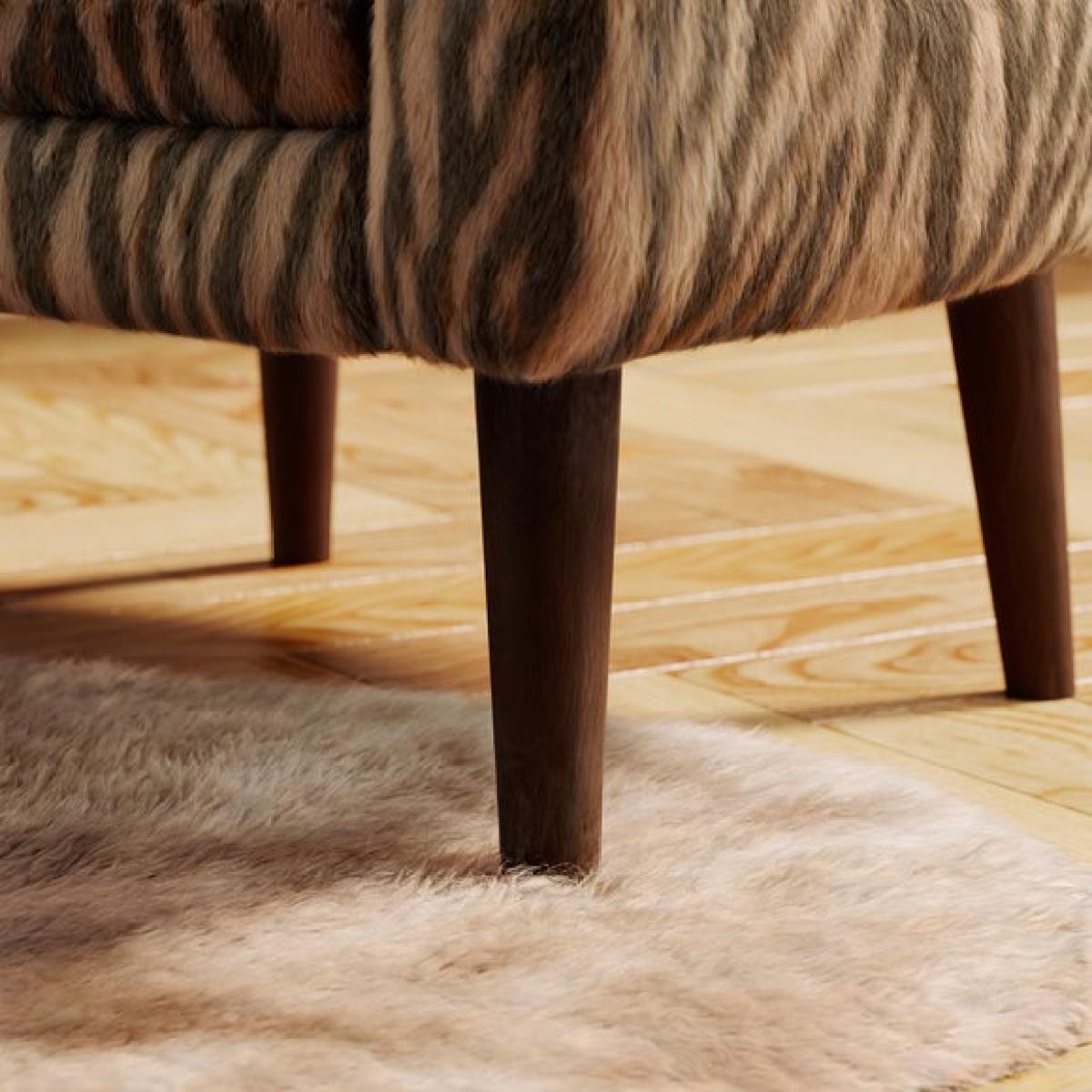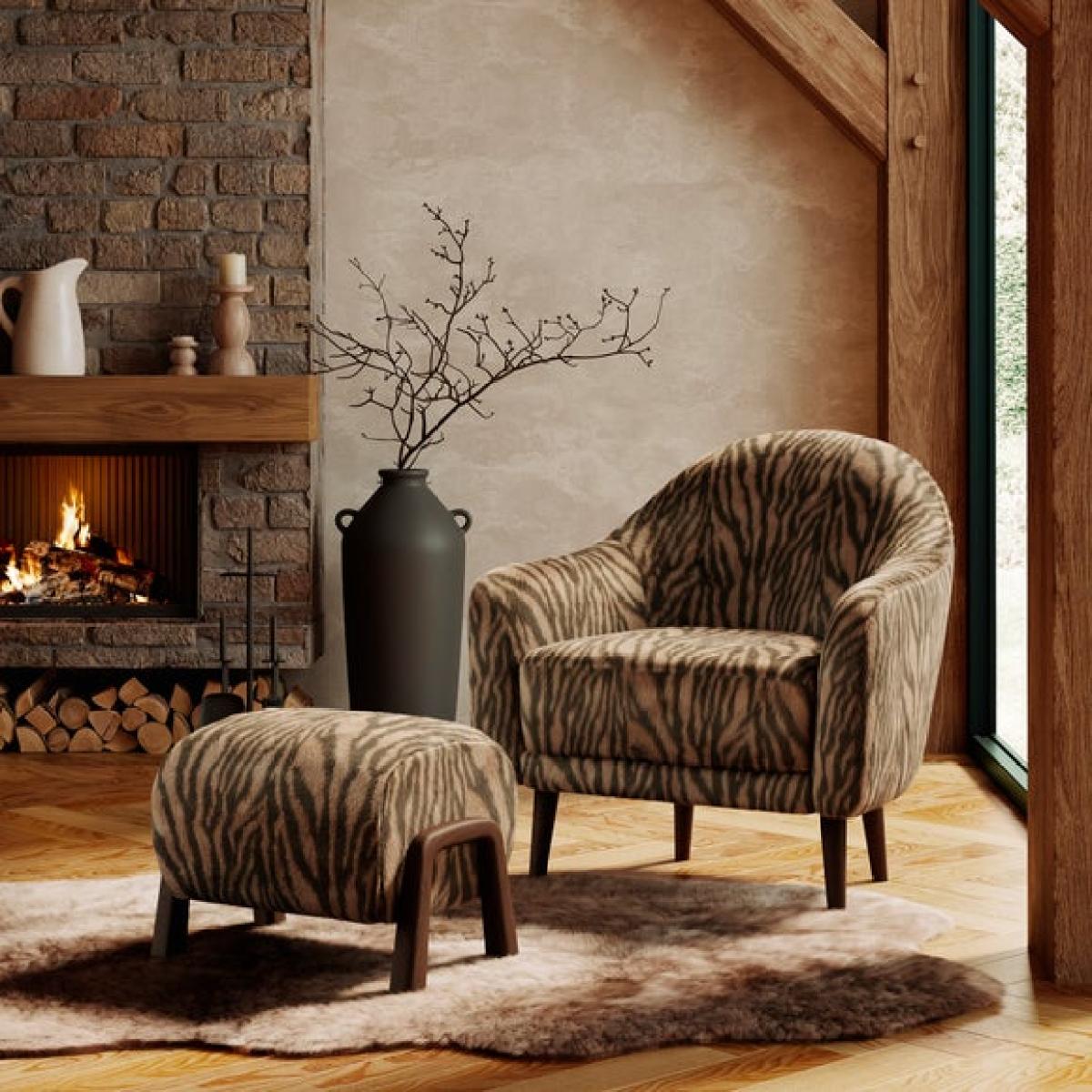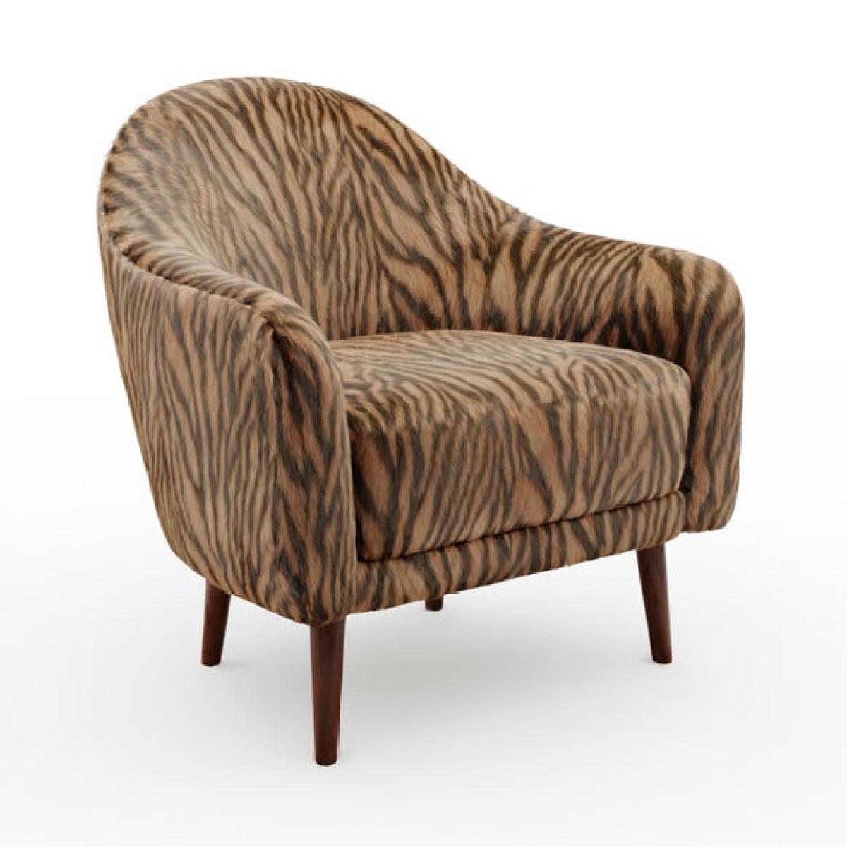 * Curved arms * Soft upholstery * Dark wooden legs * Plush cushion filling Add a bold touch to your space with this zebra print tub chair, designed to stand out while offering everyday comfort. The curved arms and plush cushion filling create a cosy, supportive seat that’s perfect for relaxing. Upholstered in soft faux fur, it brings texture and warmth to any room. Dark wood legs provide a sturdy base with a refined finish. Ideal for bedrooms, lounges or reading corners, it’s a stylish choice with a wild side.