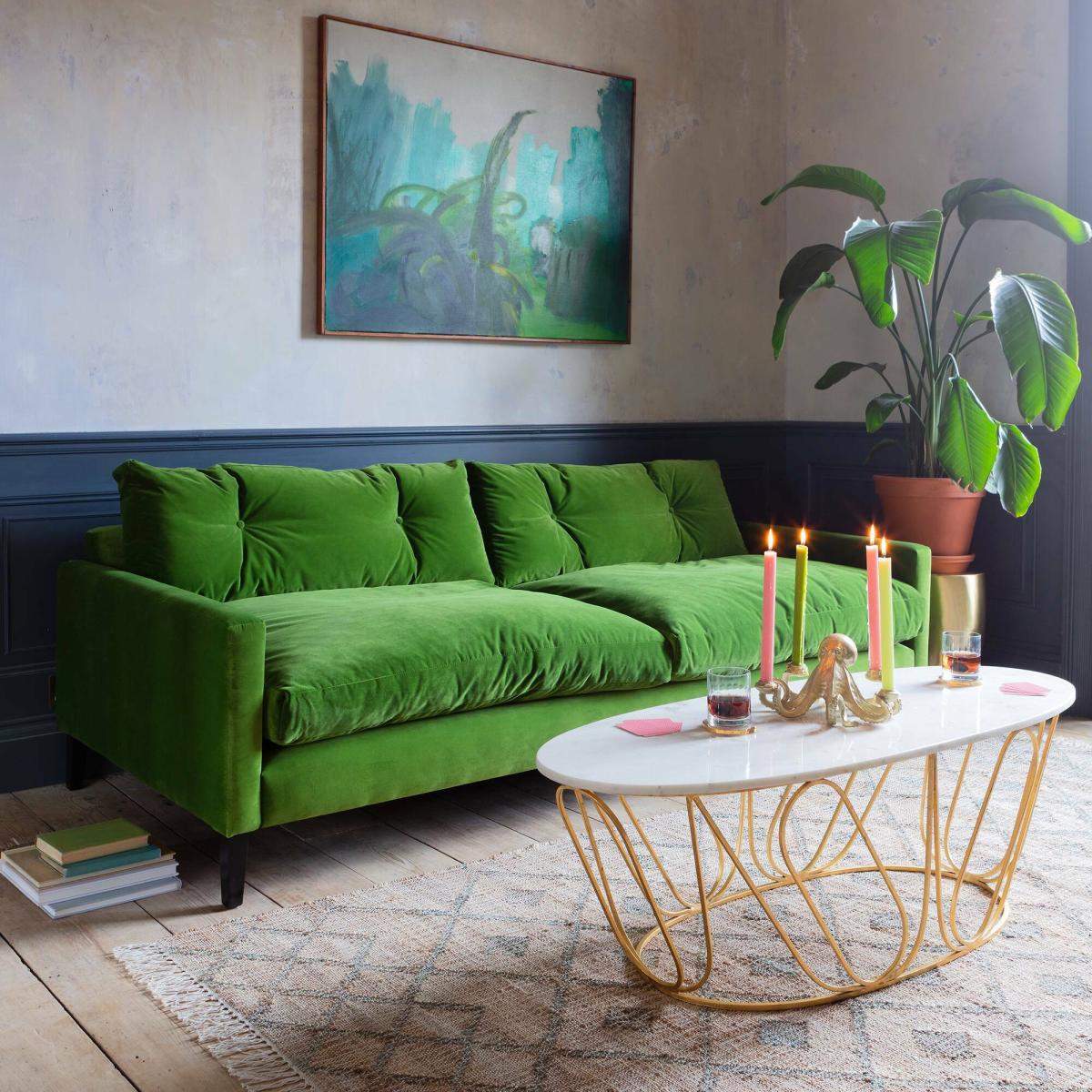 Modern mid-century style meets luxurious comfort with our Kasper sofa collection. Featuring a timelessly cool boxy frame, classic button back detailing and deep seat cushions, this beautiful range looks as good in modern interiors as it does in retro ones. The armchair is extra deep so there’s plenty of room to curl up in it with your furry friend. Available made to order in a wide range of fabric and colour options so you can find the perfect one to match your home. Pictured: Kasper Three Seater Sofa in Grass Green Stain Guarded Velvet. Handmade in 8-12 weeks and then delivered usually within 10 working days.