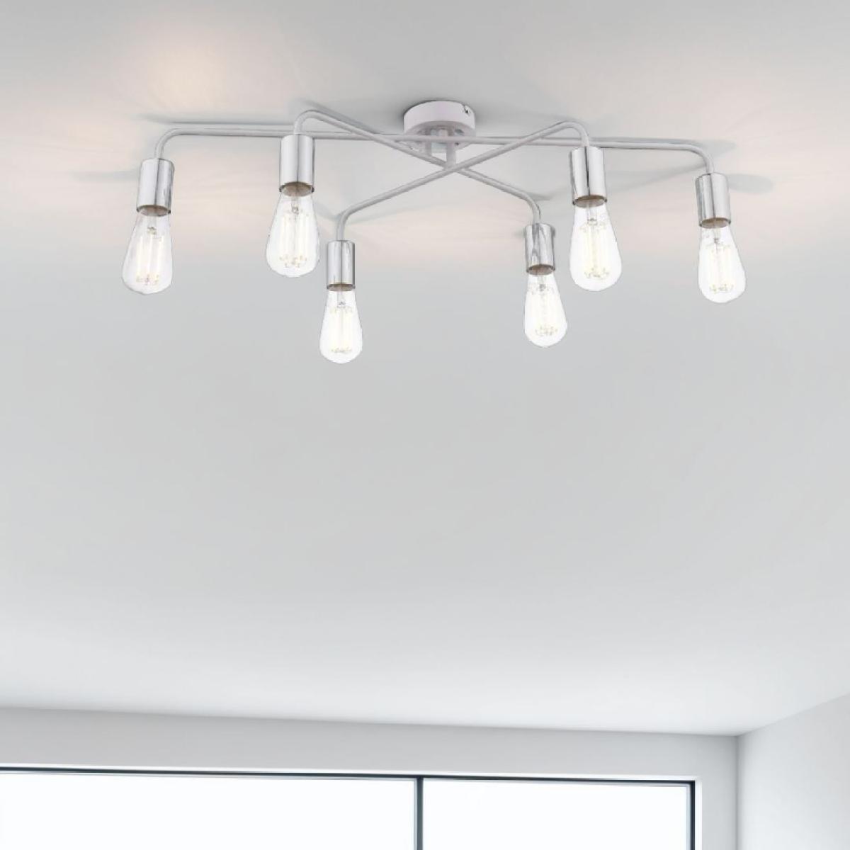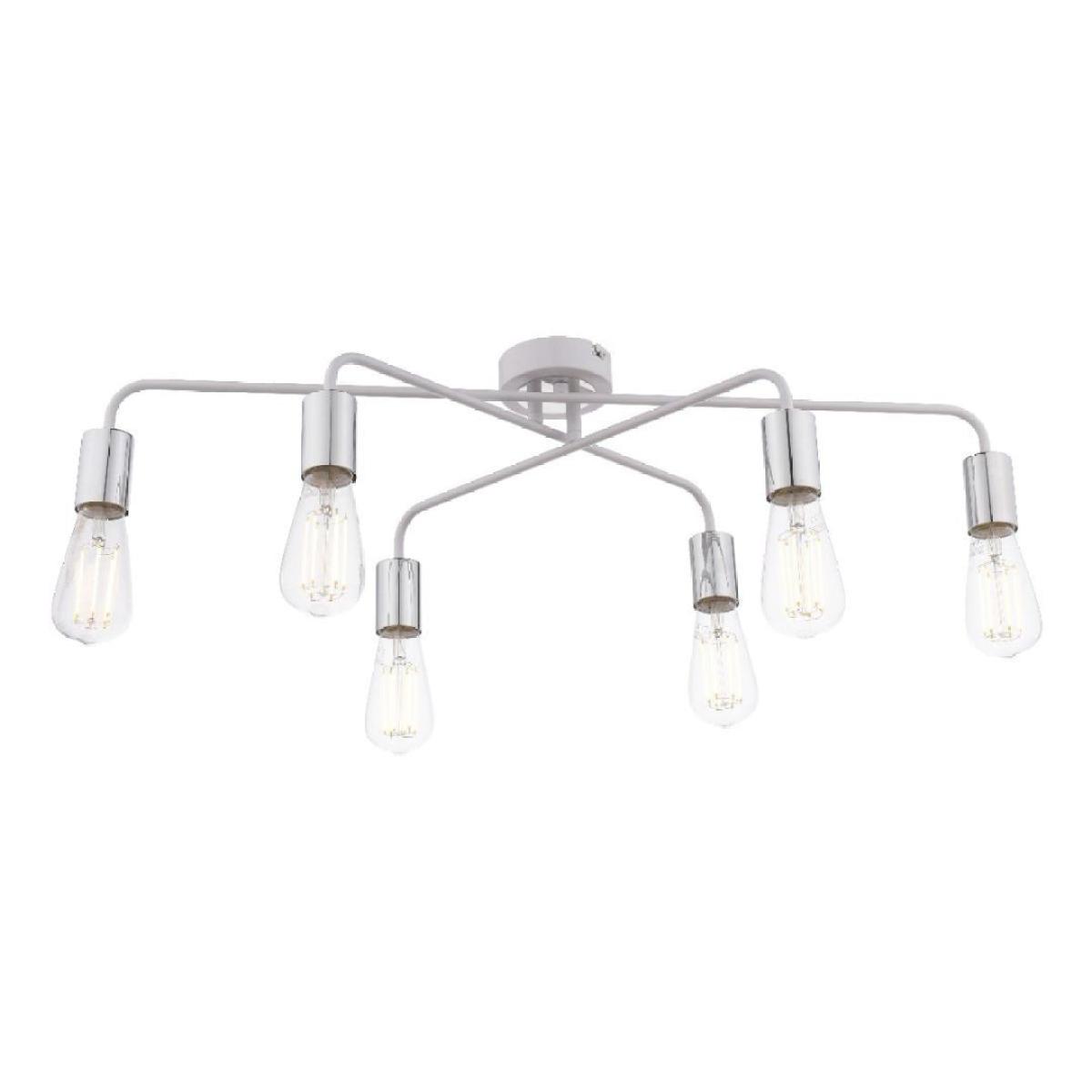 Contempory White 6 Light Pendant boasting Polished Chrome finish. Add a statement fitting to your living space with the Kasper 6 Light Pendant Light. Modern in design, this fitting adds a contemporary twist on an industrial-style light. Boasting a white gloss finish with polished chrome detailing, the 6 lamp holders would be best complimented with vintage light bulbs. We think this light looks best with any of our E27 LED Vintage light bulbs for a rustic, warm glow Contempory White 6 Light Pendant boasting Polished Chrome finish. Add a statement fitting to your living space with the Kasper 6 Light Pendant Light. Modern in design, this fitting adds a contemporary twist on an industrial-style light. Boasting a white gloss finish with polished chrome detailing, the 6 lamp holders would be best complimented with vintage light bulbs. We think this light looks best with any of our E27 LED Vintage light bulbs for a rustic, warm glow