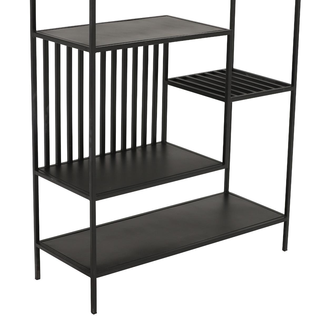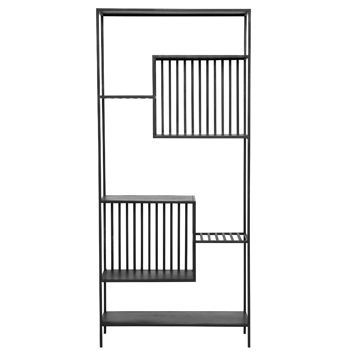 Design. The Kassel Bookshelf is a must have for any study or living space. Ideal for storing all of your favourite books, photo frames and trinkets, this tall piece will catch eyes with its unique asymmetric shelving system. Created from solid metal for a sturdy industrial inspired finish, the slated detailing to back portions of this bookshelf adds a dimensional and contemporary feel.