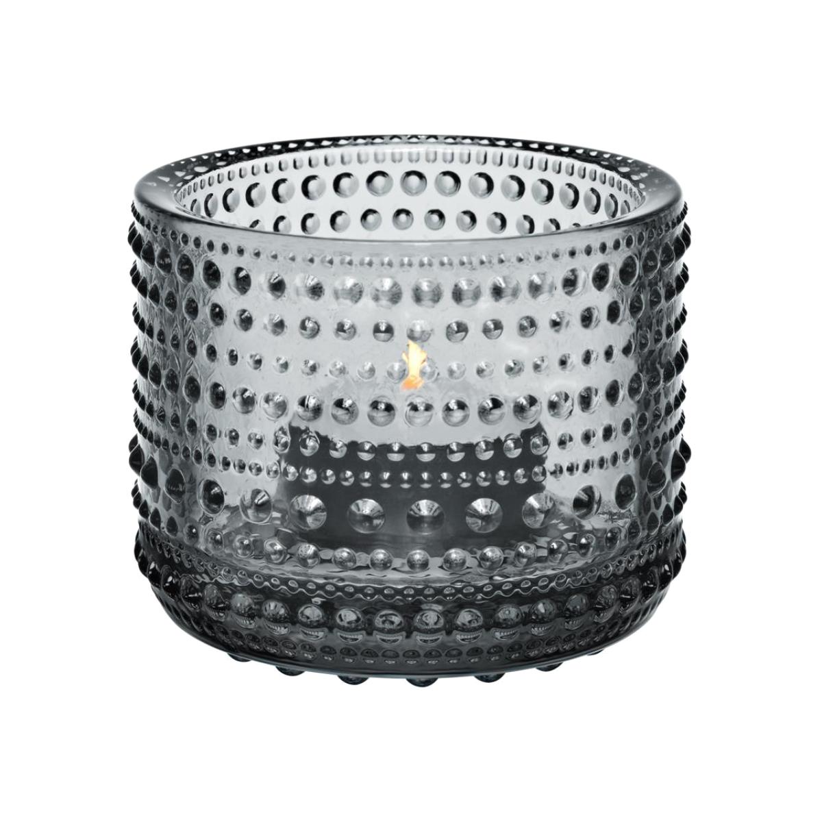 I love the Kastehelmi candleholder for its subtle yet distinctive texture, which adds visual interest without overwhelming a space. Its grey tone makes it quite versatile, working well in both modern minimalist interiors and more Scandinavian-inspired schemes. It’s particularly effective styled on a side table or mantel alongside natural materials like wood or greenery for a balanced look. For practical styling, I’d suggest grouping a few of these candleholders at differing heights or pairing them with tapered candles for added elegance. The bubble pattern catches the light beautifully when a candle is lit, creating a cosy ambience, but it also works well as a standalone decorative piece when unlit.