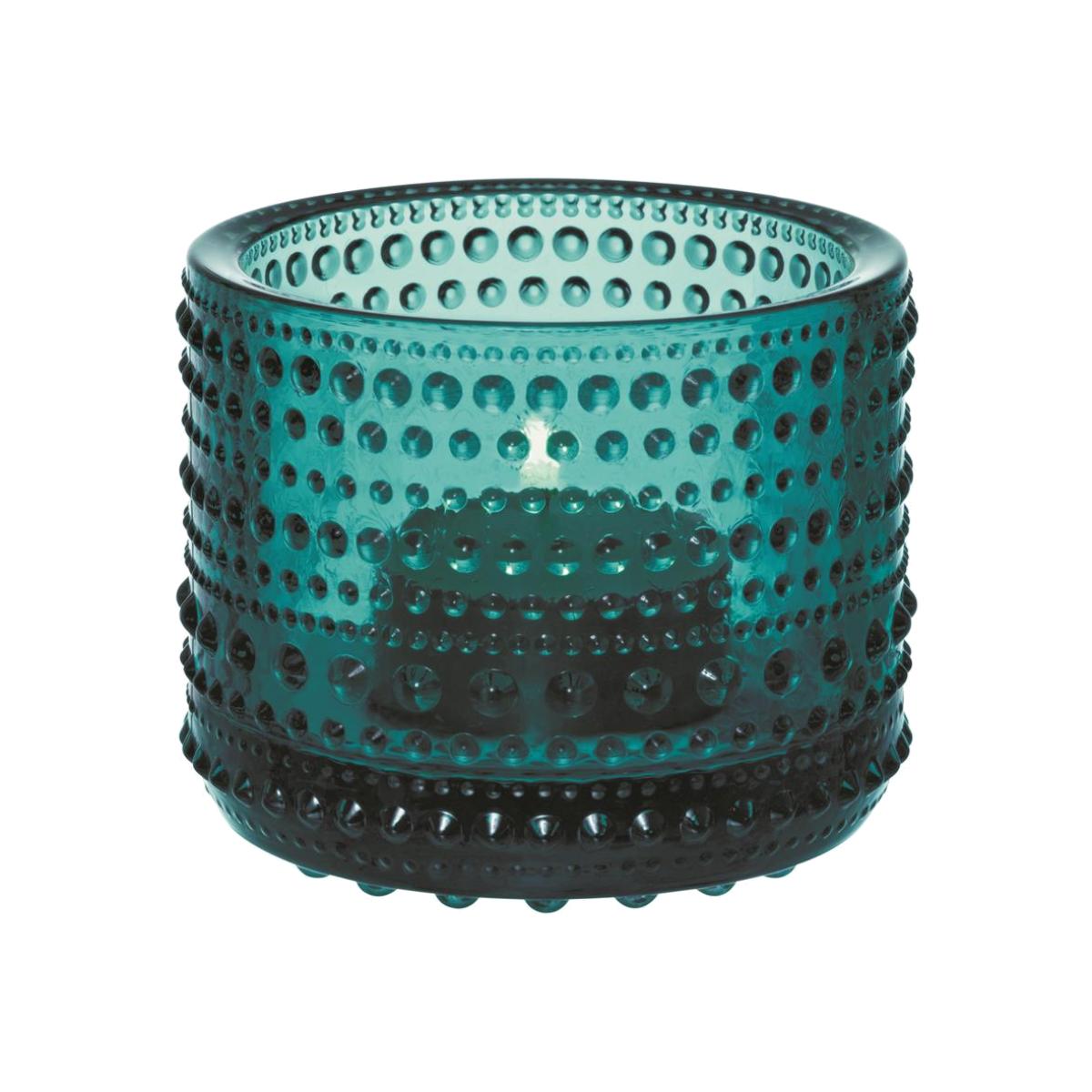 The Kastehelmi candleholder in sea blue offers a lovely pop of colour and texture, making it a versatile piece for various interiors. I love how its vibrant hue can brighten up neutral settings or complement marine-inspired themes, adding a sense of calm and freshness. It works particularly well in Scandinavian or minimalistic spaces where its distinctive dotted glass design adds visual interest without clutter. For styling tips, try grouping a couple together on a mantel or side table for a layered look or placing it on a dining table with candles for an inviting ambiance. Its colour and shape also lend themselves well to coastal or boho-inspired rooms, bringing a touch of the seaside indoors.