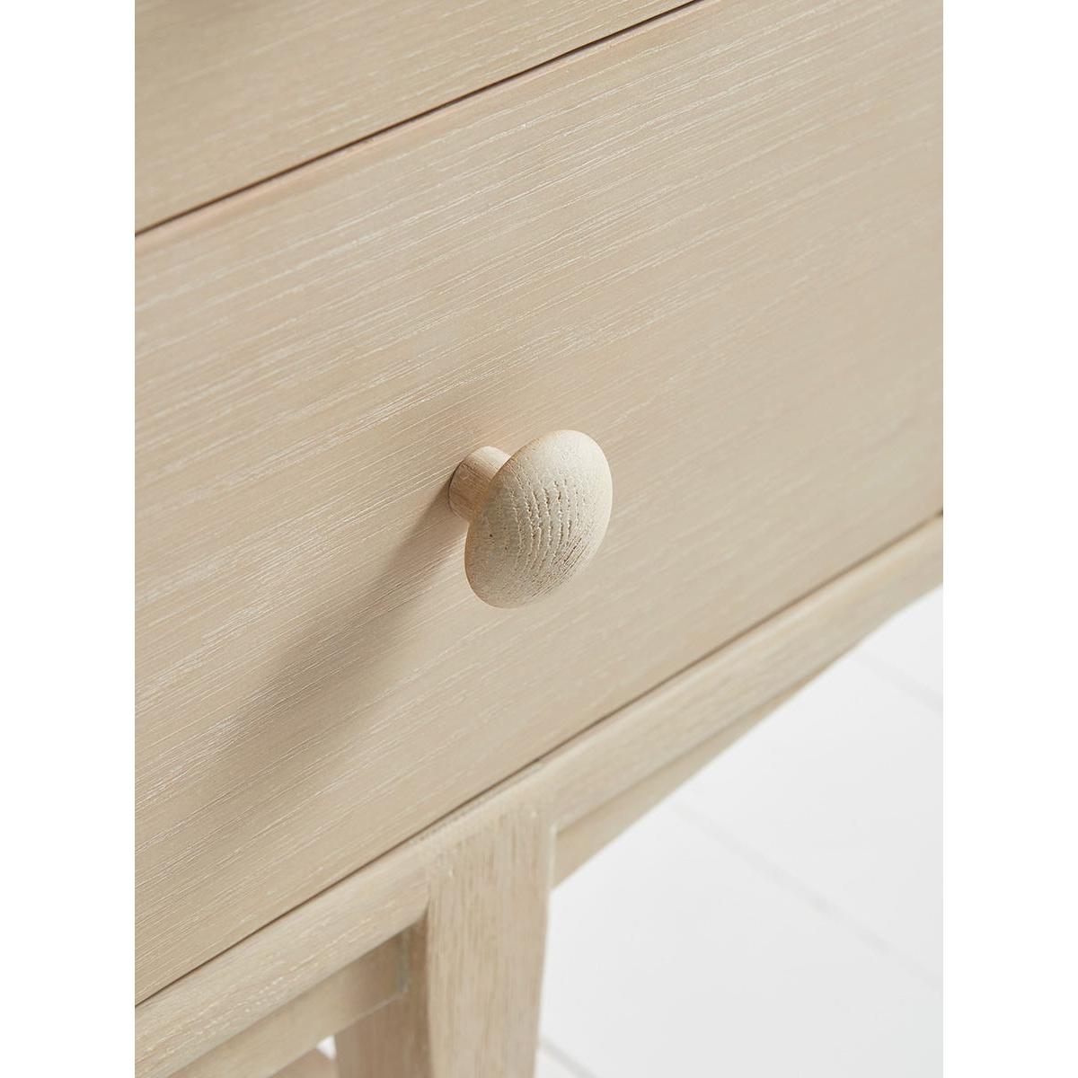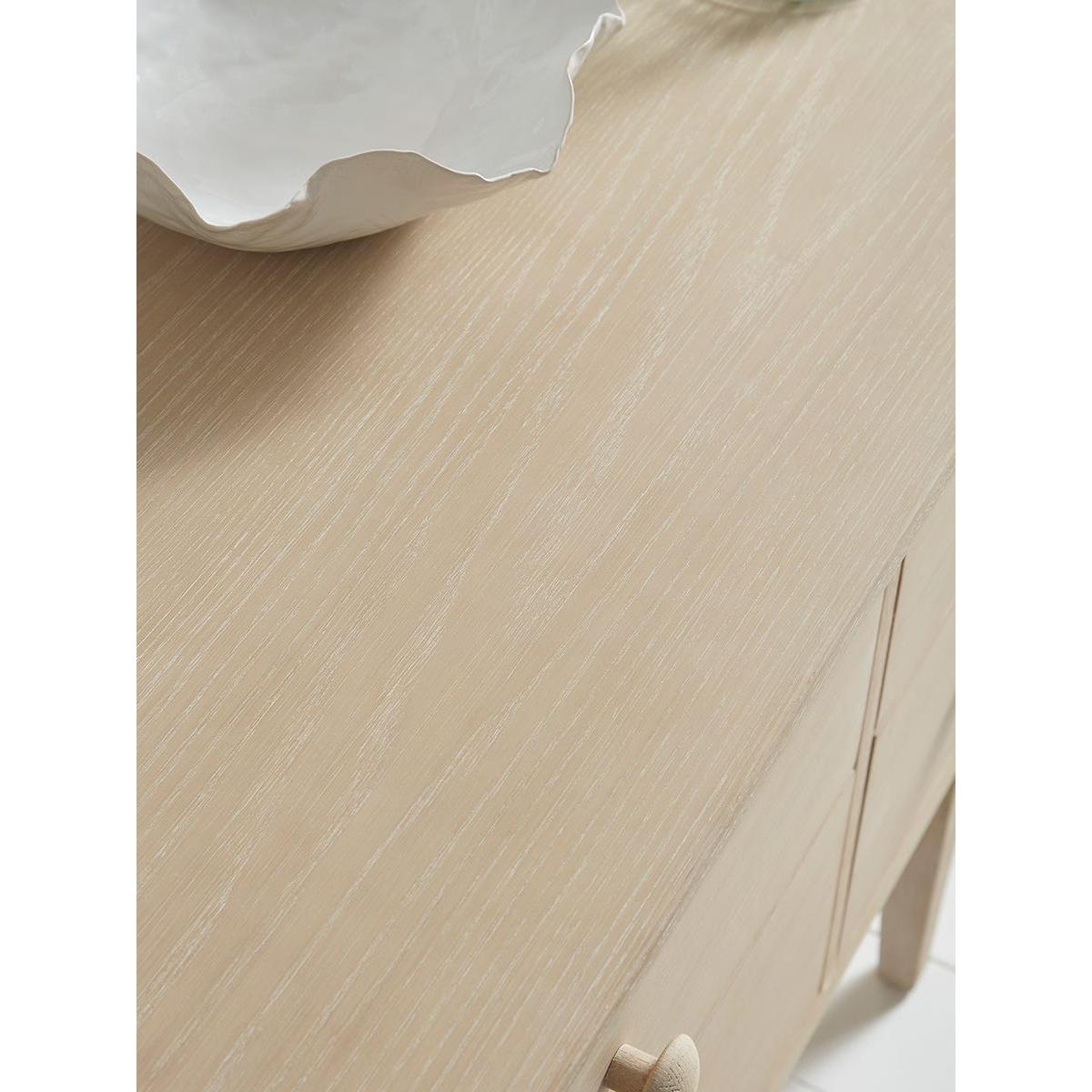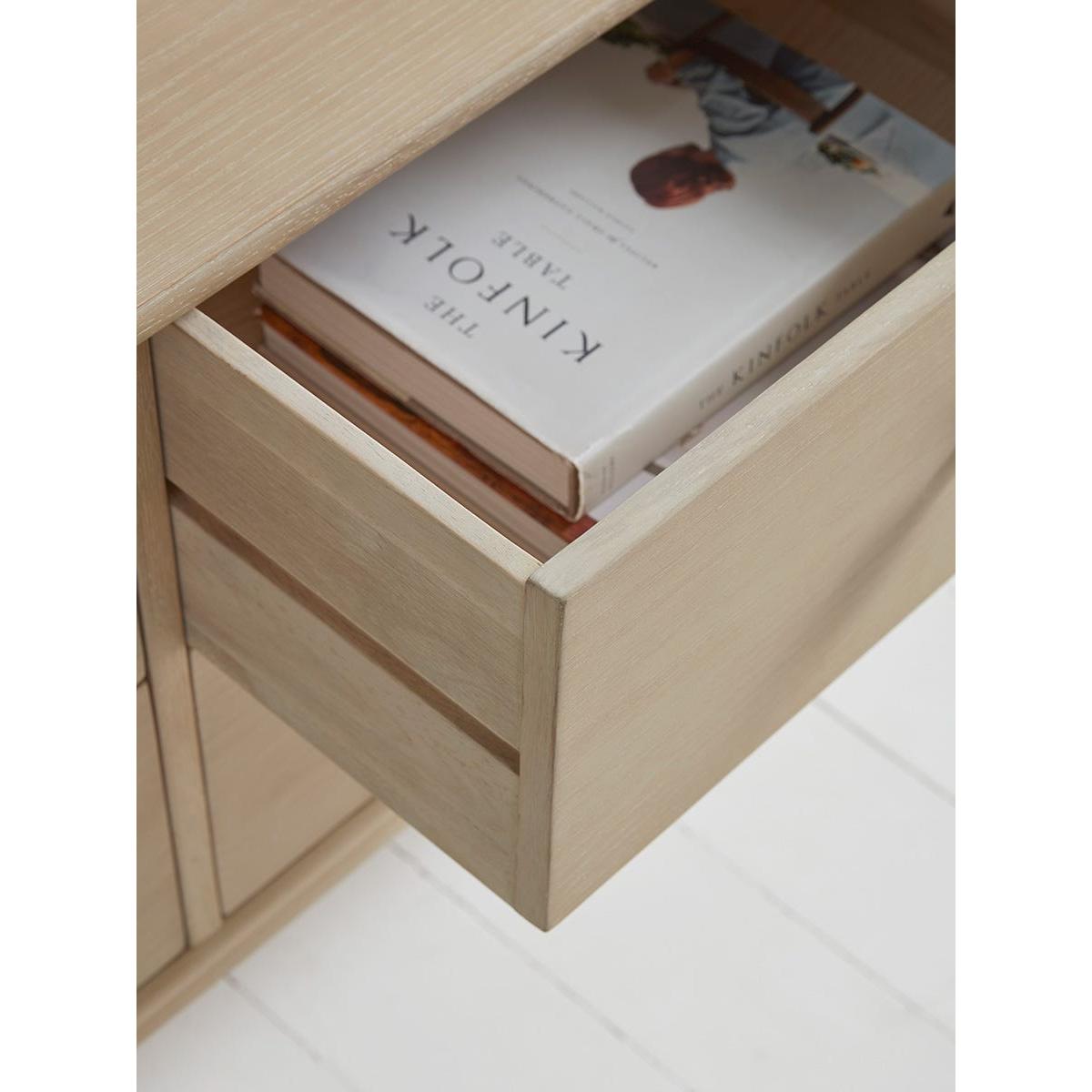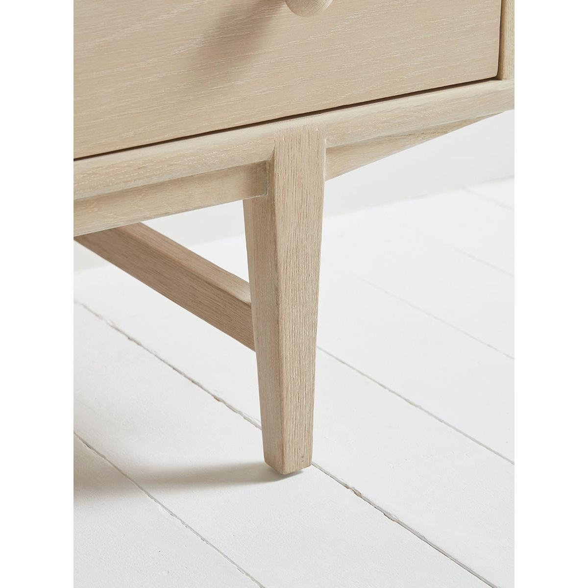 Katara is a sideboard inspired by the best of Scandinavian design. Pale blonde natural wood and simple outlines make for an elegant and functional piece that will sit well in neutral room schemes. The oak sideboard has six drawers with button knobs in the same wood and stands on slim tapered legs. The middle drawers are wider than the outer drawers which offers a pleasing profile.
