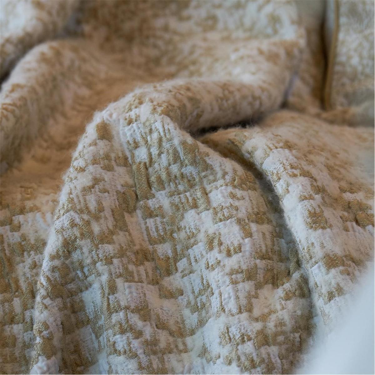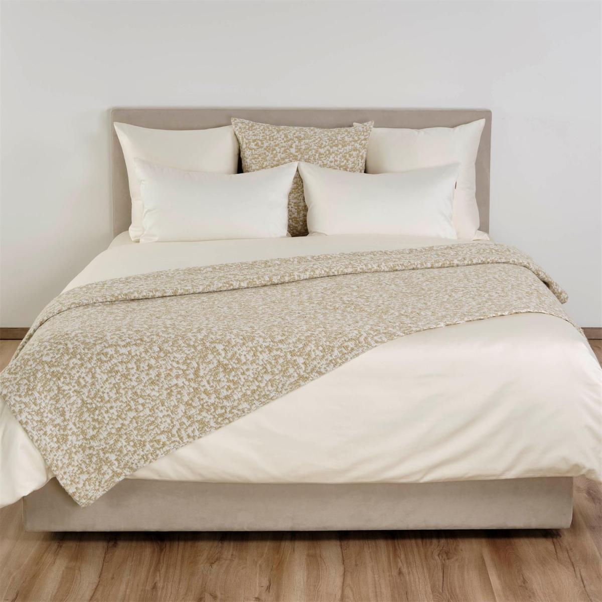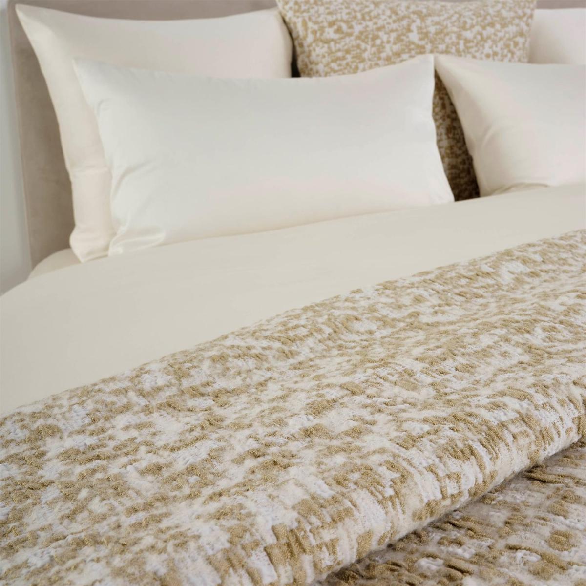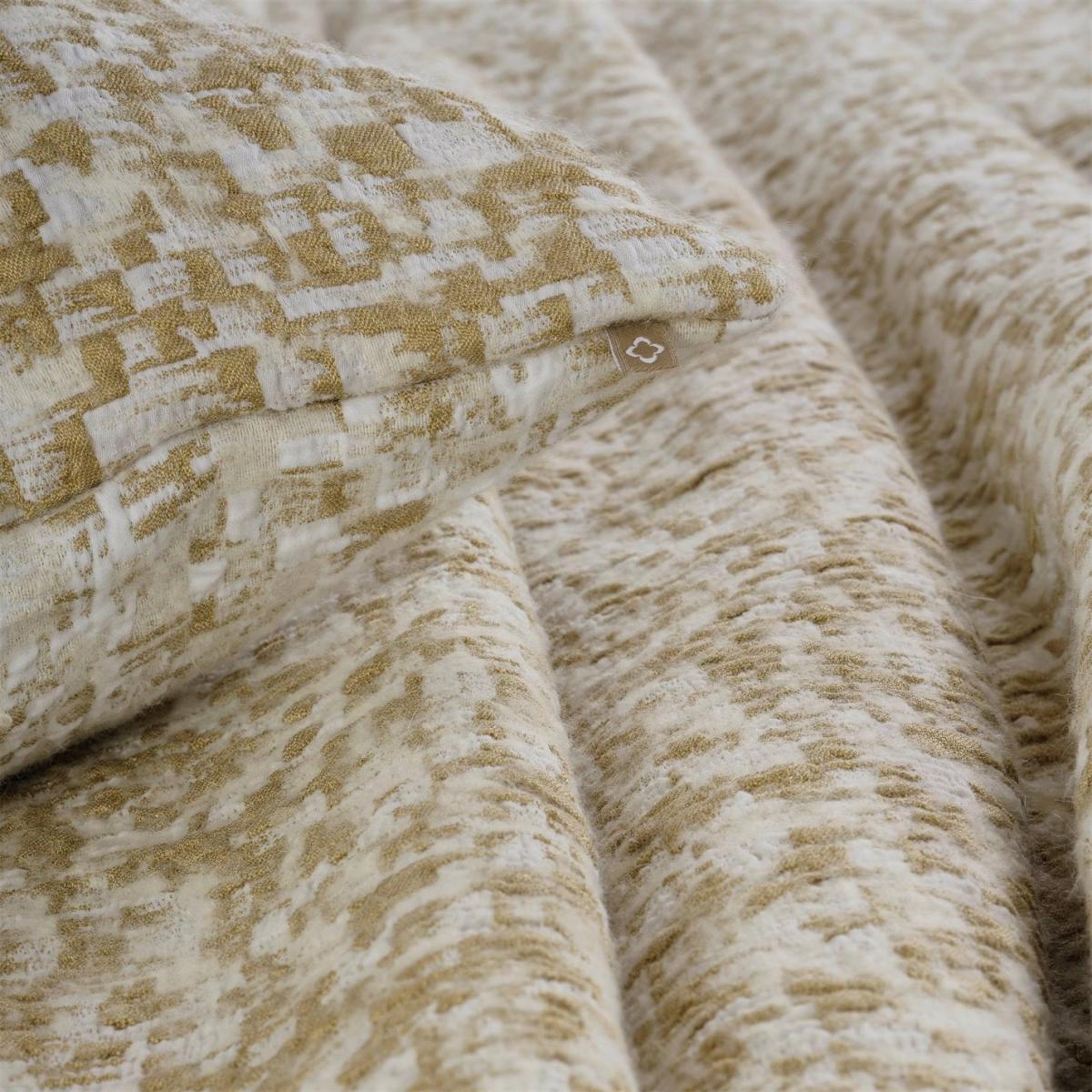 Bring a touch of luxe to your bedroom with this Kate bedspread from Celso de Lemos. An abundance of gold and cream texture, the jacquard pattern can only be produced on the specialised machine that Celso de Lemos possess. Crafted from an Egyptian cotton, alpaca wool and silk blend, it’s been made with carefully-controlled ecological friendly production methods. Pair with complementing bed linen from Celso de Lemos to complete the look.