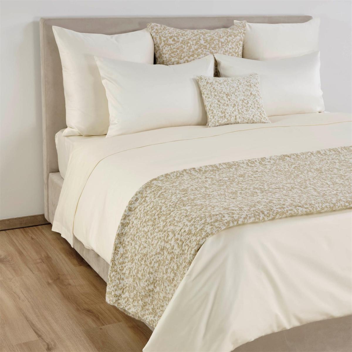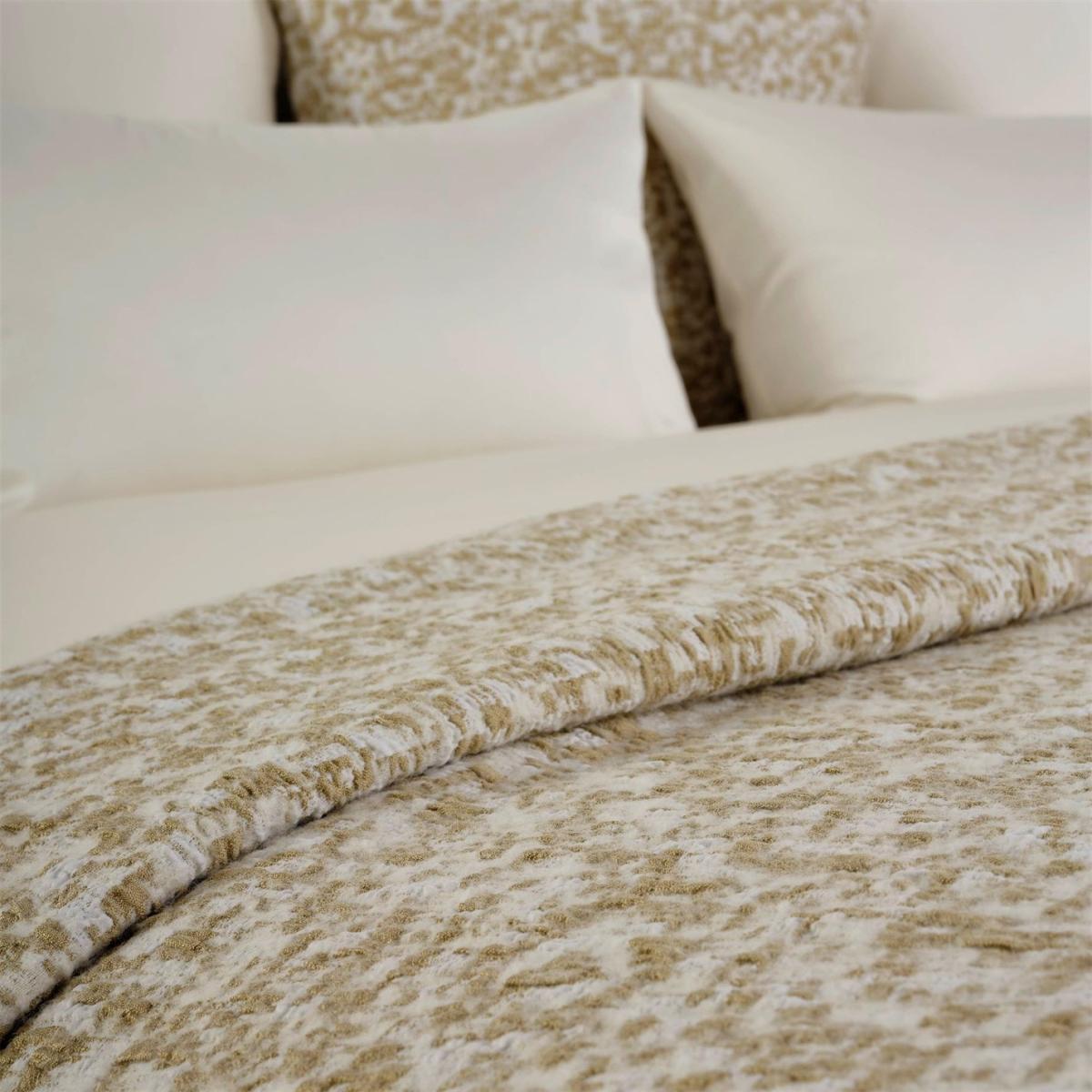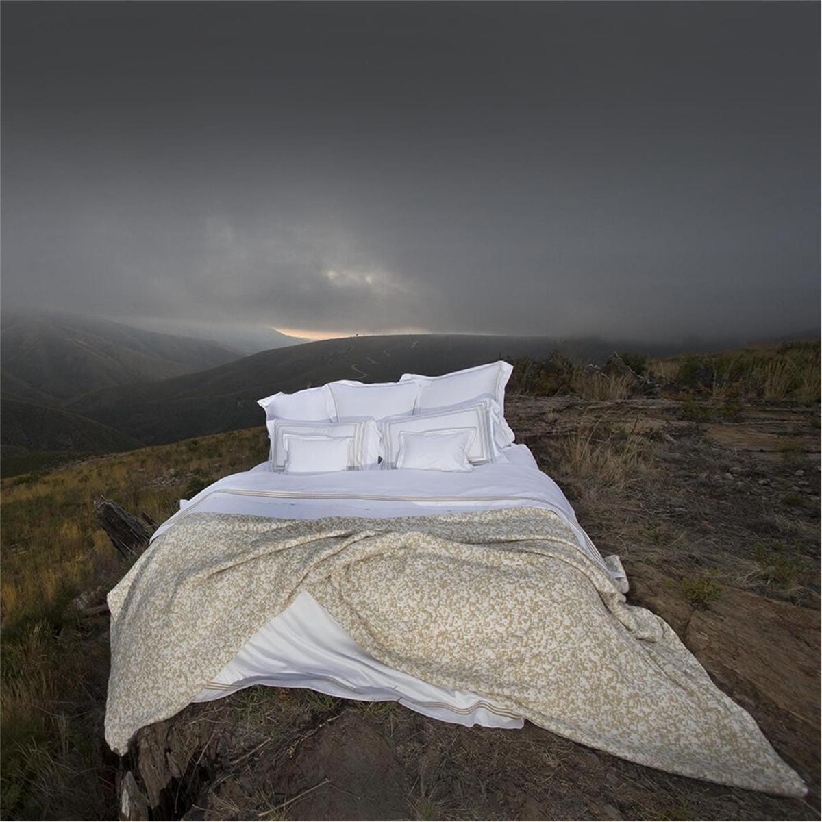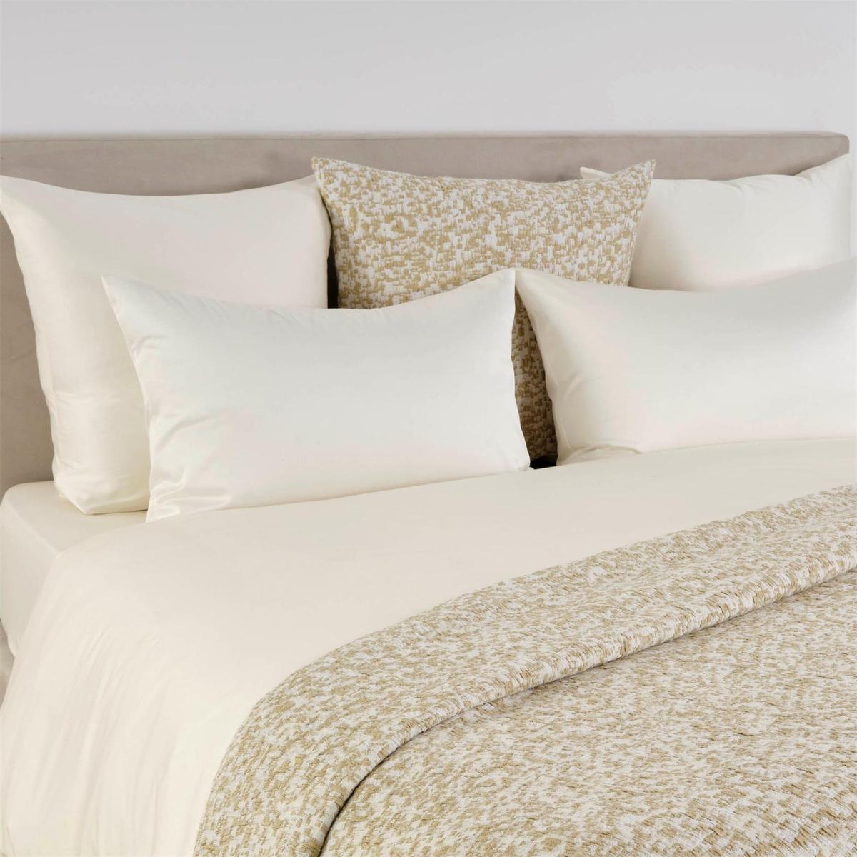 Bring a touch of luxe to your bedroom with this Kate bedspread from Celso de Lemos. An abundance of gold and cream texture, the jacquard pattern can only be produced on the specialised machine that Celso de Lemos possess. Crafted from an Egyptian cotton, alpaca wool and silk blend, it’s been made with carefully-controlled ecological friendly production methods. Pair with complementing bed linen from Celso de Lemos to complete the look.