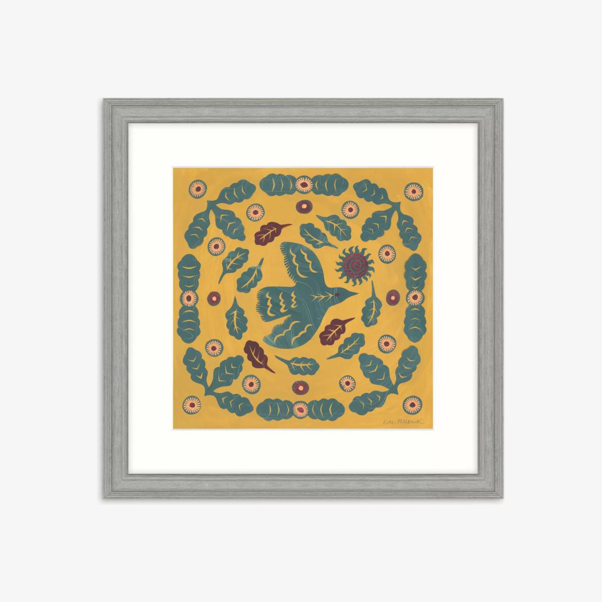 Kate Millbank - 'Blackbird Oak' Framed Print & Mount, 45 x 45cm, Yellow/Multi