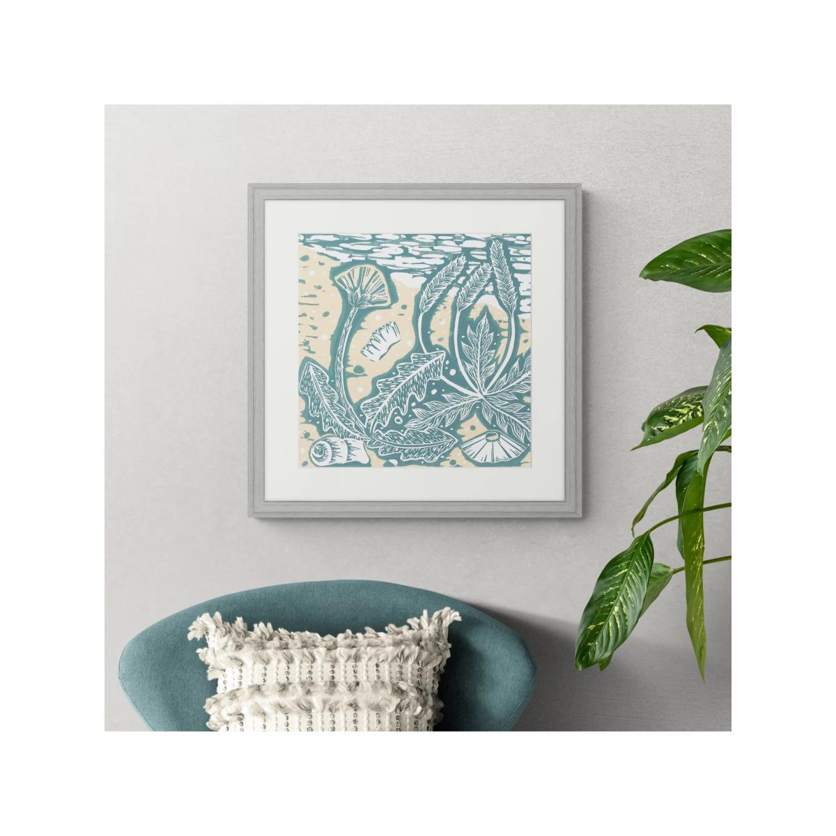I love the Kate Millbank Shore Flora print for its fresh, coastal vibe-perfect for bringing a touch of the seaside indoors. Its blue and multi colour palette makes it quite versatile, working especially well in relaxed, contemporary or Scandinavian interiors. It’s a great size at 55cm square, making it a focal point above a sofa or sideboard, but it also works well grouped with other prints for a gallery wall. For styling tips, consider pairing it with light woods, natural textures, or neutral upholstery to really let the colours pop. It’s also a lovely choice for bathrooms or kitchens with a nautical or seaside theme, thanks to its marine-inspired motif.