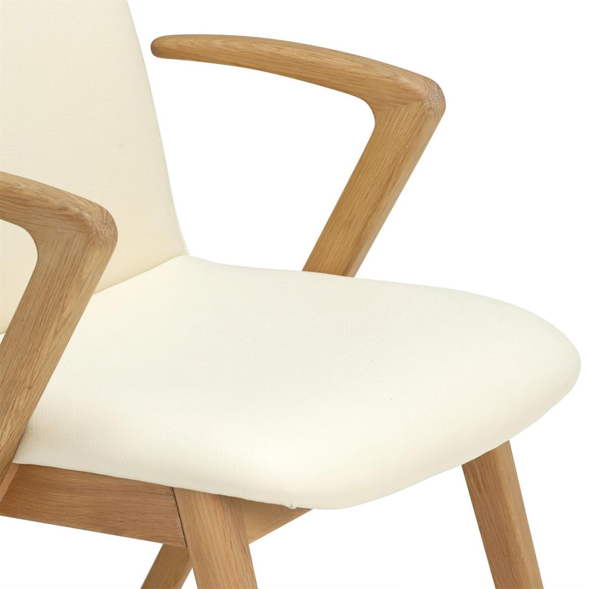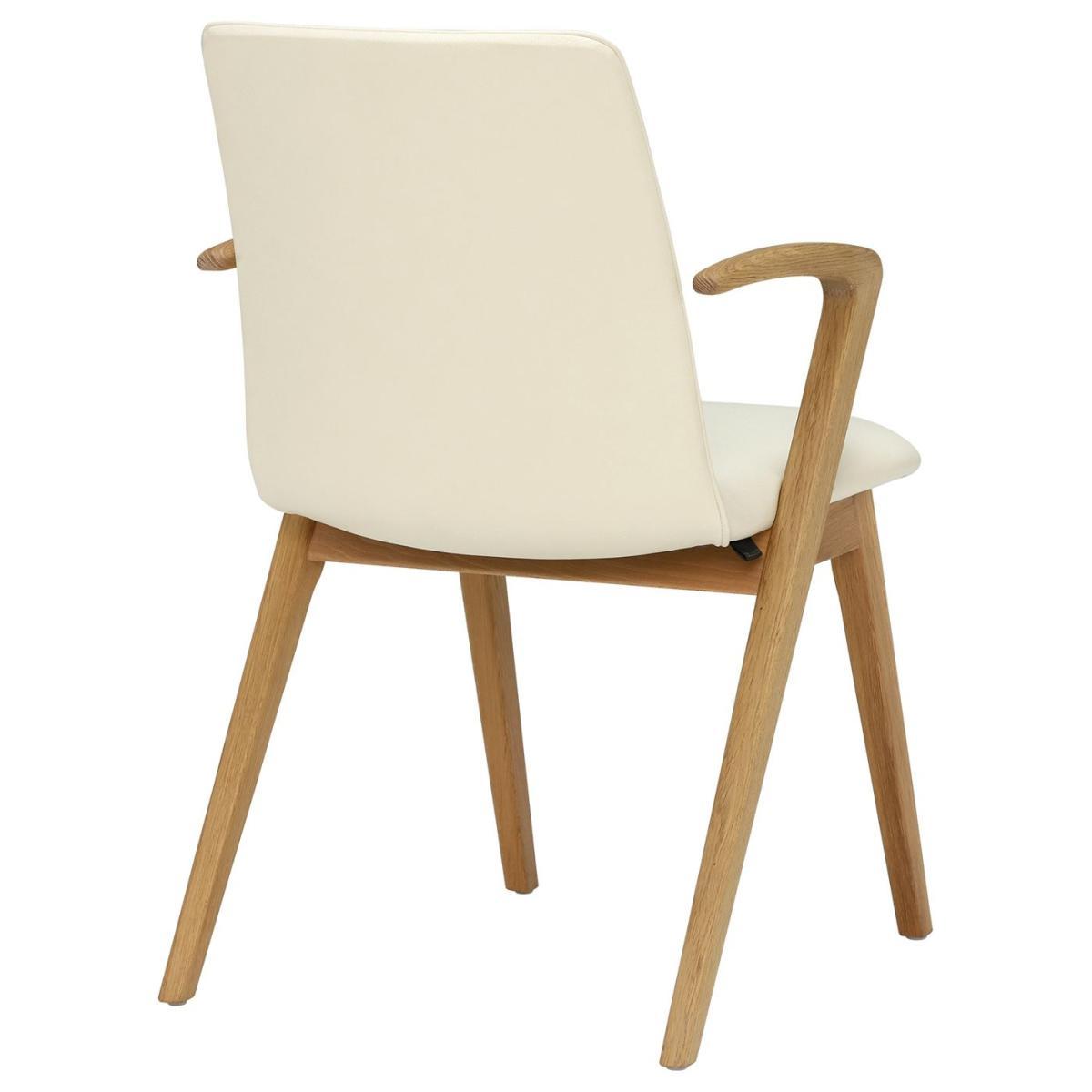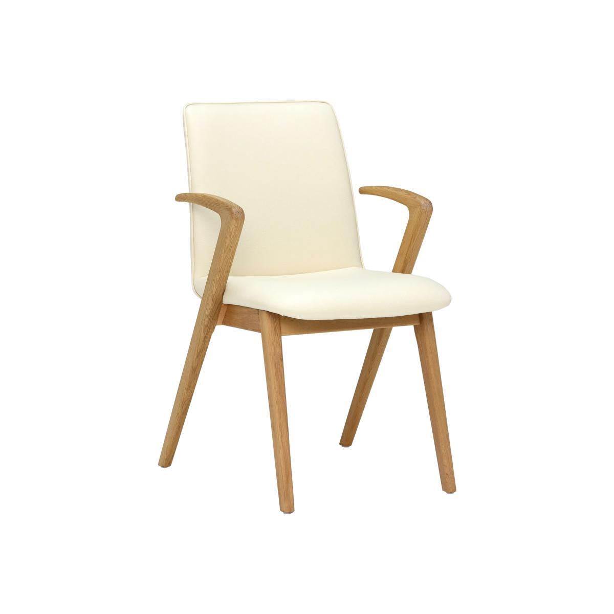 Design. Beautifully designed with a rounded, splayed base that includes gracefully extended back legsfor its sleek arms, the Kate Dining Chair is an attractive addition to the modern home. Including comfy foam padding that adds a soft touch to its faux leather upholstery, the Kate's accommodating neutral colouring complements various interior looks.