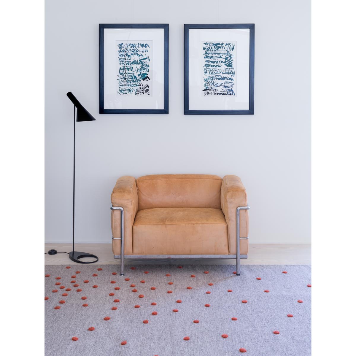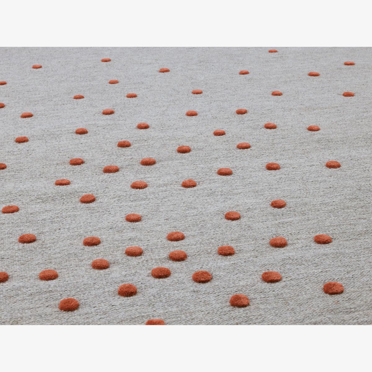 Bula Rug from Swedish brand Kateha is made of wool with a linen warp. The large rug features an irregular dotted pattern created by longer pile that stands out from the otherwise smooth surface. Use the large rug as a living room rug or let it bring life to the bedroom.