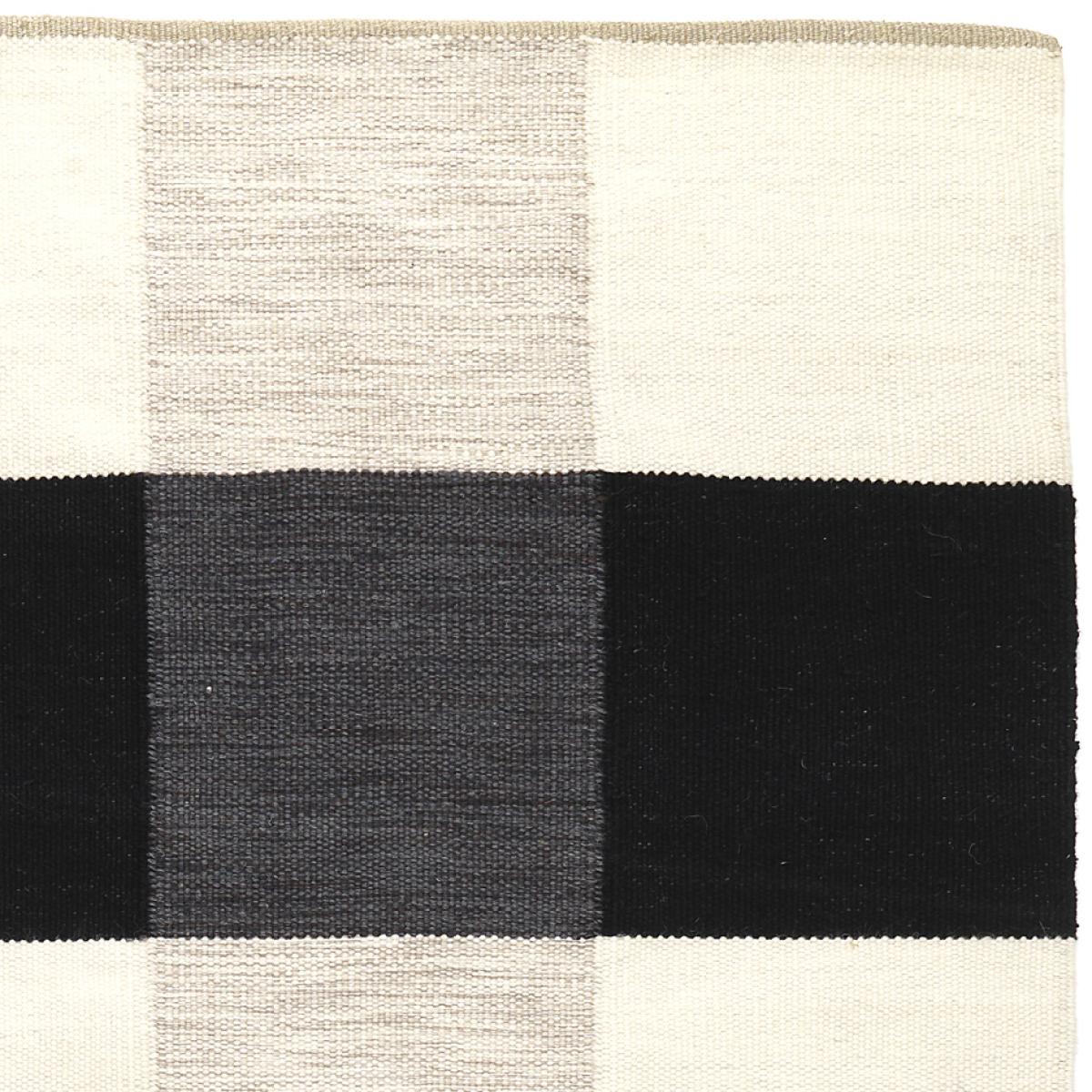 The Night and Day handwoven rug, designed by Erika Lagerbielke for Kateha, is a beautiful carpet made of the highest quality wool. It features a flaxen warp and woven linen hemming, and with its black, white, and grey pattern, it fits perfectly under the coffee table, in your dining room, or by your desk. The dirt-repellent wool makes the rug easy to clean and maintain. The carpet has the same pattern on both sides and is completely reversible.