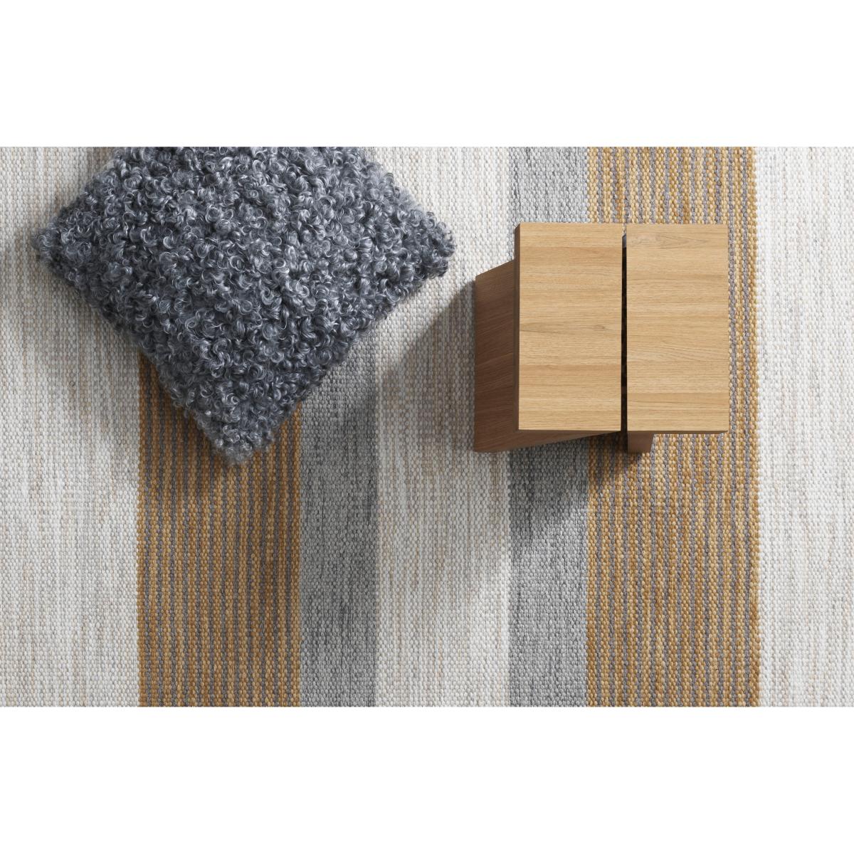 I love the Kateha Terreno wool rug in ochre for its versatile yet inviting look. Its earthy tones and striped pattern make it a great addition to both modern and Scandinavian-inspired interiors, adding warmth and texture without overwhelming the space. This size works well for larger living rooms or under a dining table, anchoring the furniture and creating a cosy atmosphere. Practical styling tips include pairing it with neutral furniture to highlight its colours, or layering it over a larger, textured base rug for added depth. Because it’s wool, it’s durable and easy to maintain, making it suitable for high-traffic areas where style and practicality matter.