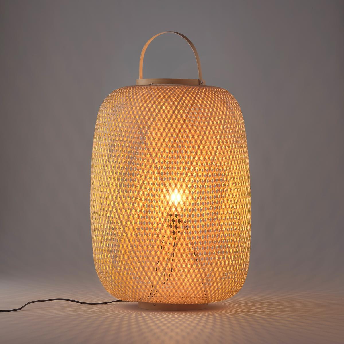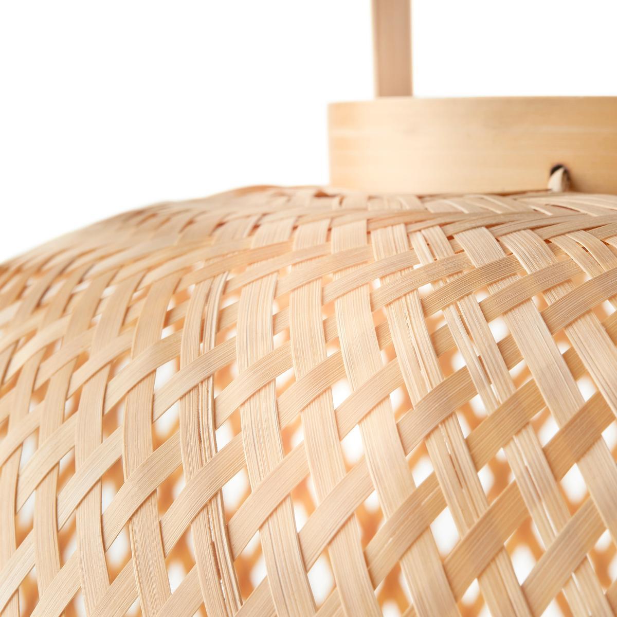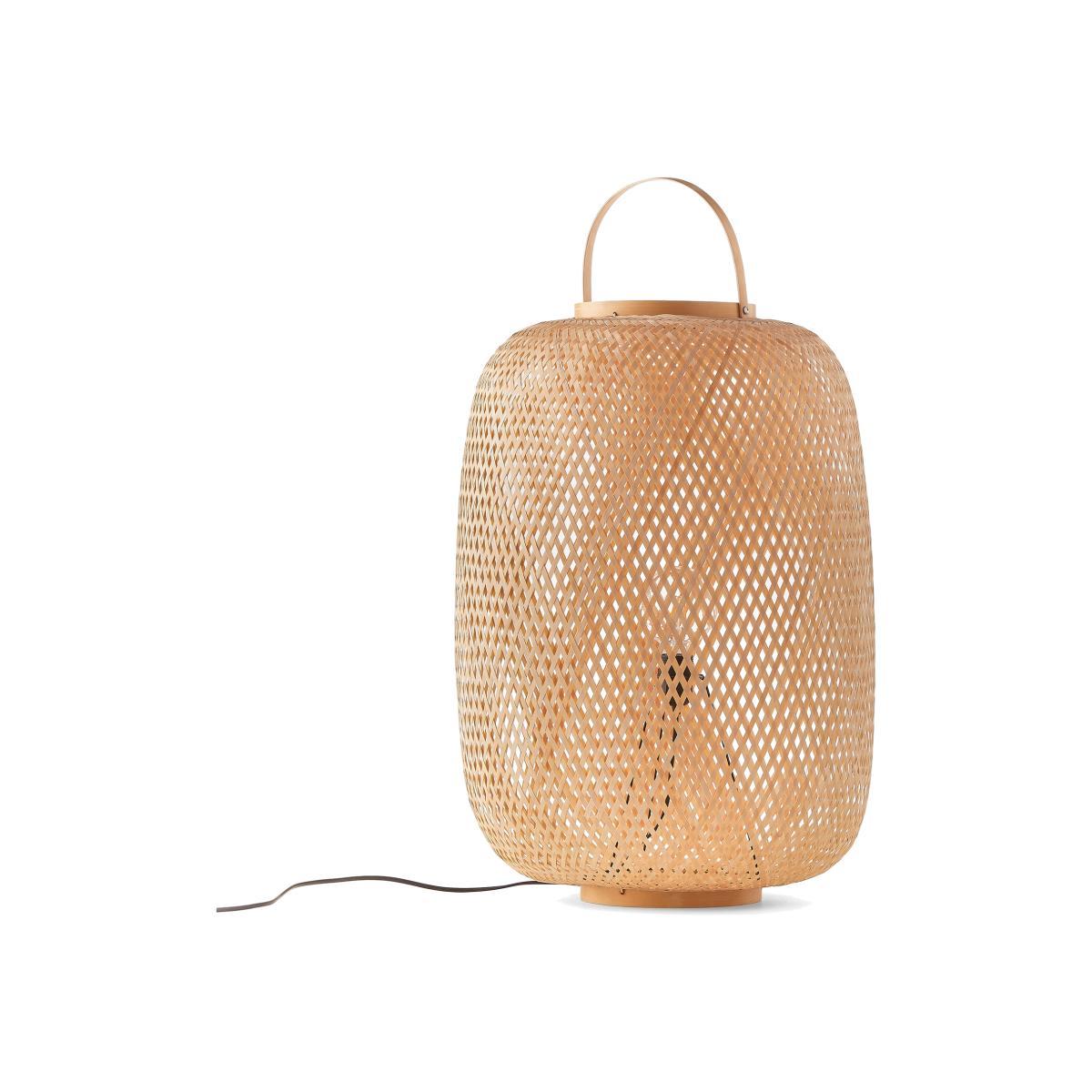 Get the natural look with our Katia lamp: a lantern-inspired light composed of a woven structure crossed with bamboo fibres for a soft diffusion of light.