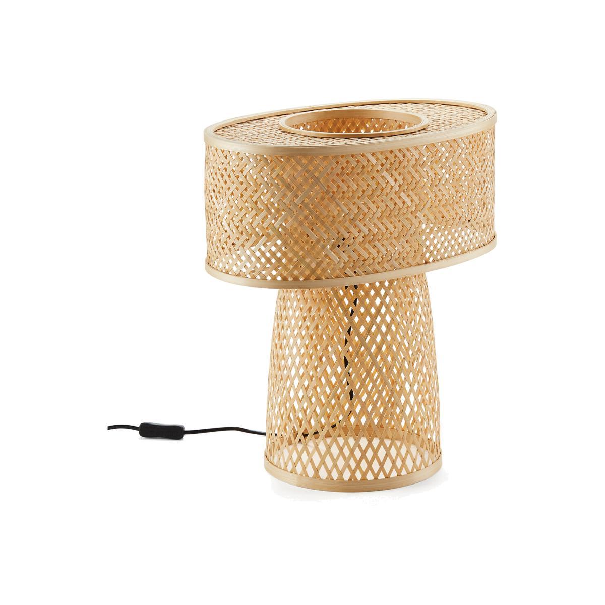 Want a natural looking light? Here it is. Made of woven bamboo, this Katia table lamp diffuses a warm light with beautiful patterns. A natural style with a nod to the Bohemian, it's a subtle yet pretty lamp.