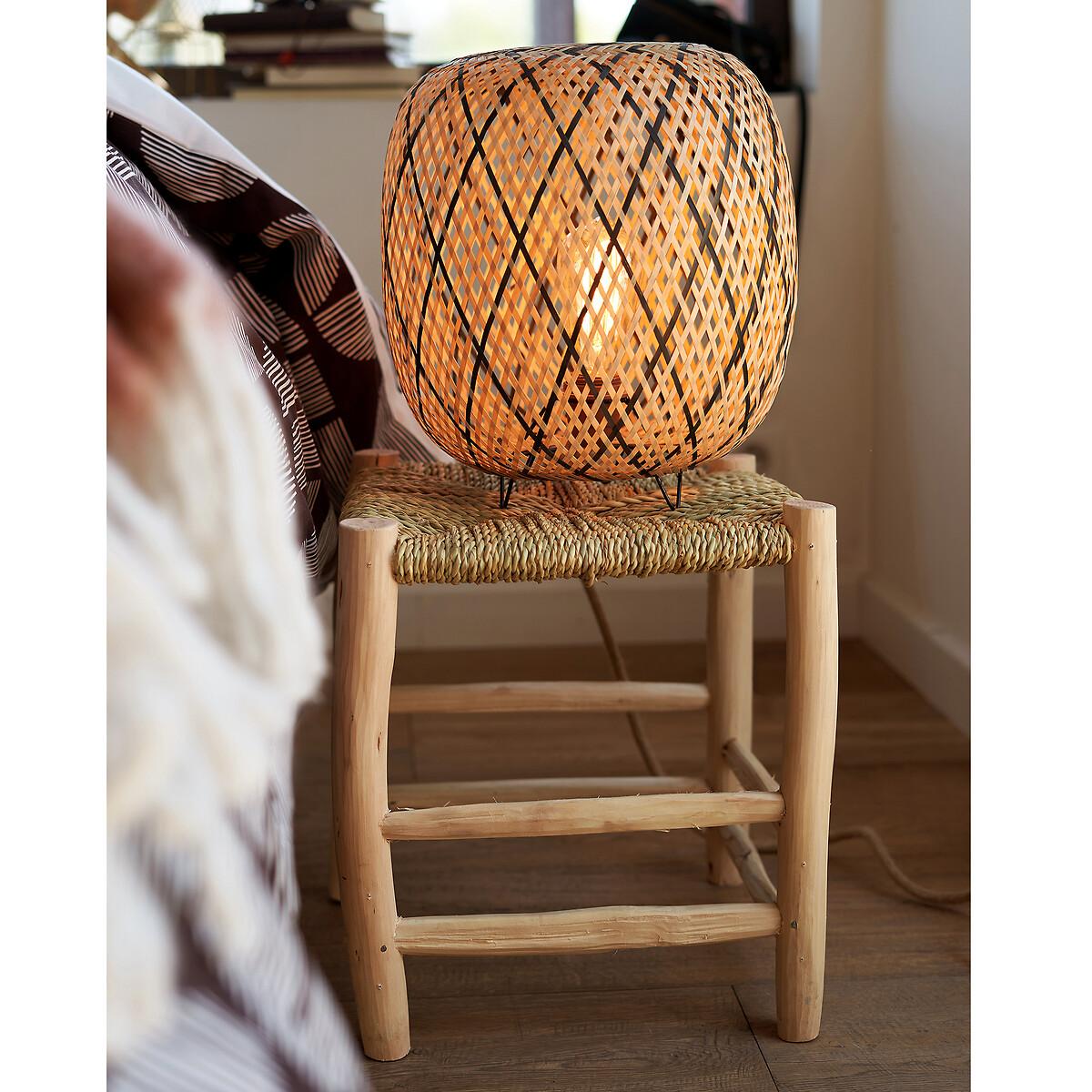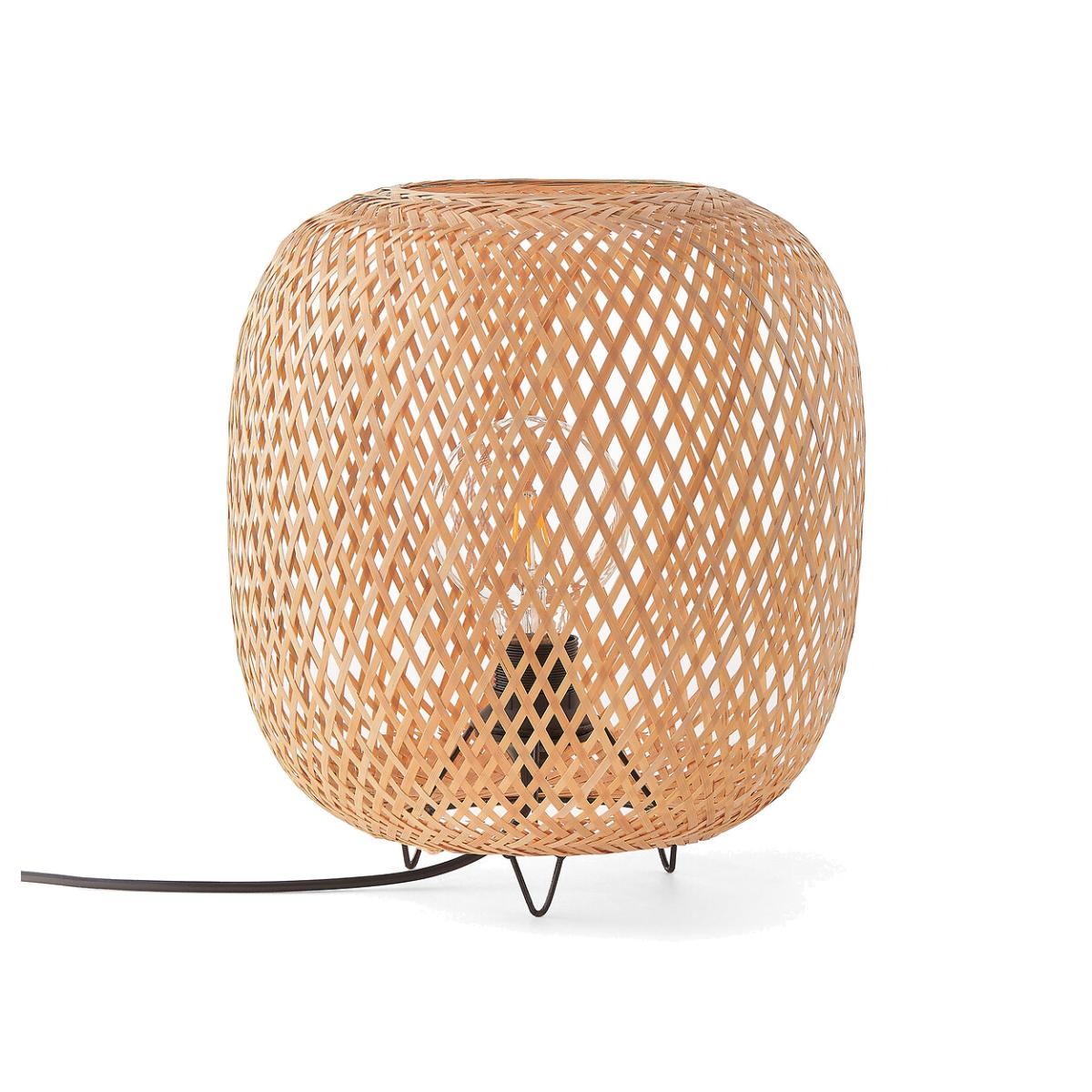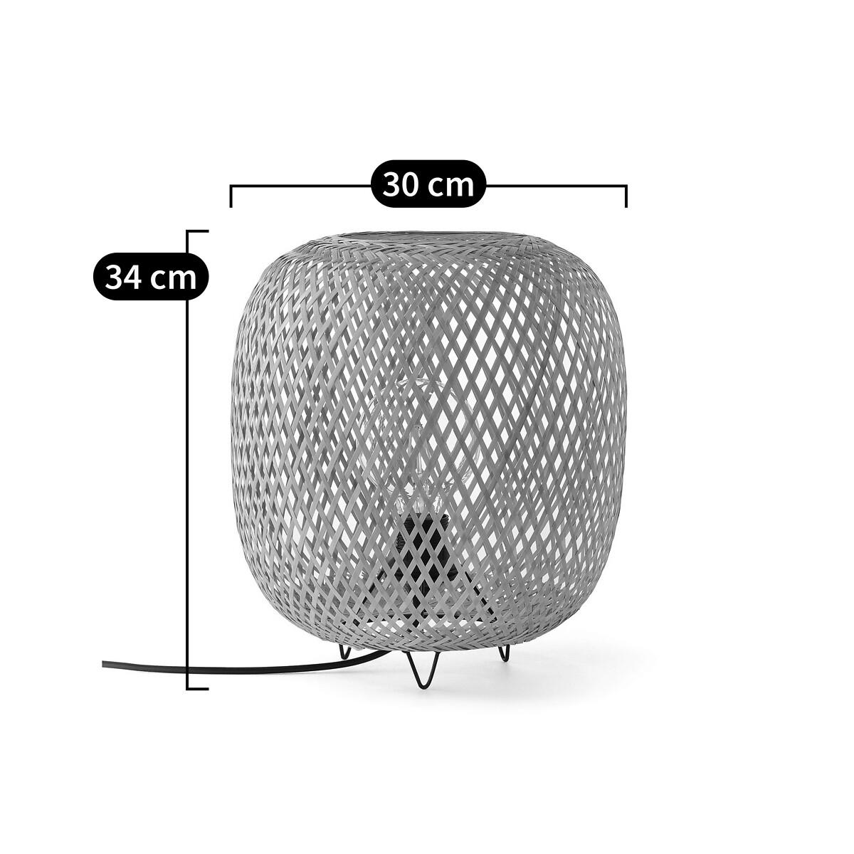 Put nature in the spotlight with this original table lamp, made of woven bamboo fibres and a metal base in black epoxy finish. Product Details • Woven bamboo lamp • Iron structure covered with epoxy paint • Supports E27 bulb (not supplied) • E27 socket for 40W max bulb (not included) energy classes A-EDimensions • Diameter: 30cm • Height: 30cm • Height with base: 34cm Parcel Dimensions:1 parcel • 33 x 33 x 33cm • Weight: 1.5kg