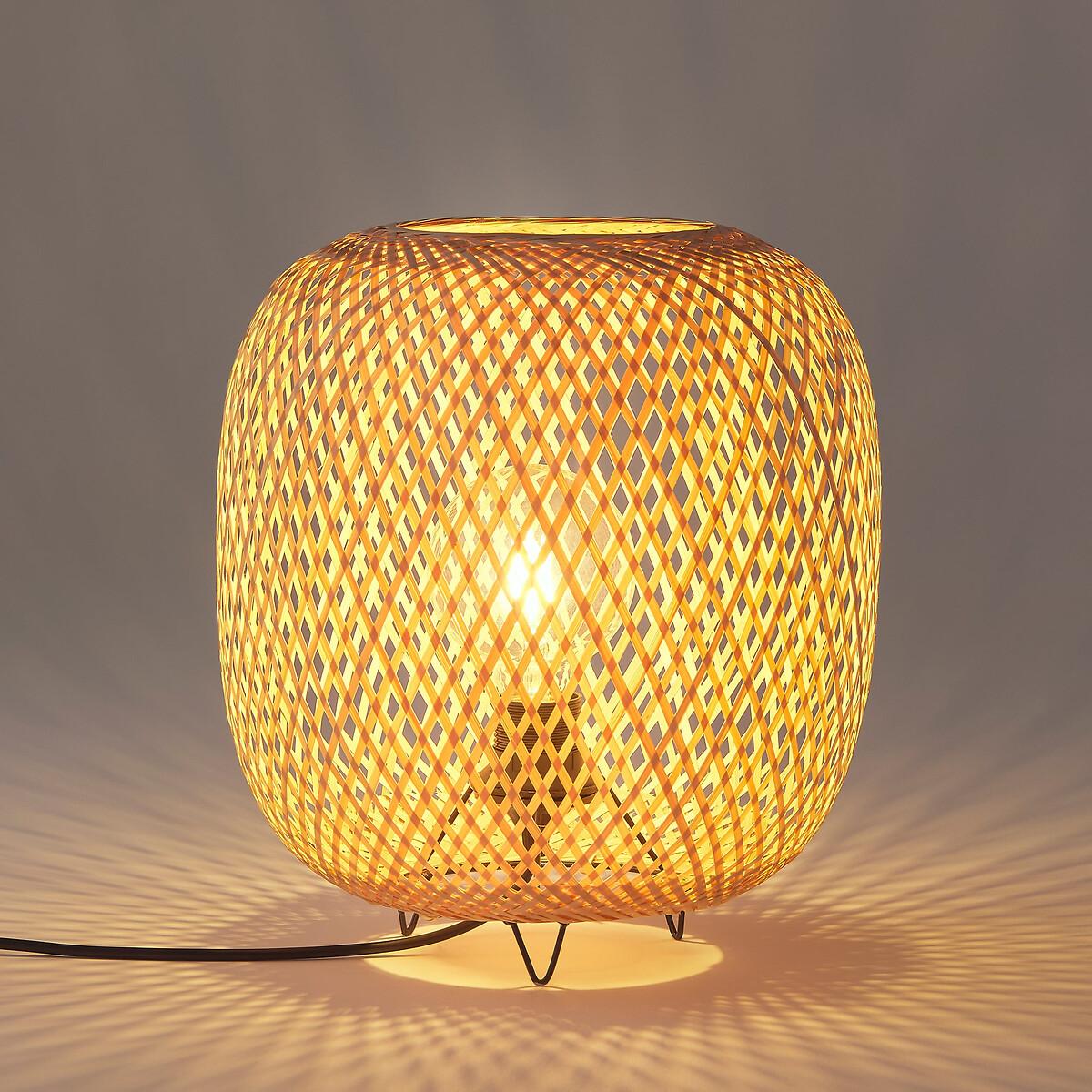 Put nature in the spotlight with this original table lamp, made of woven bamboo fibres and a metal base in black epoxy finish. Product Details • Woven bamboo lamp • Iron structure covered with epoxy paint • Supports E27 bulb (not supplied) • E27 socket for 40W max bulb (not included) energy classes A-EDimensions • Diameter: 30cm • Height: 30cm • Height with base: 34cm Parcel Dimensions:1 parcel • 33 x 33 x 33cm • Weight: 1.5kg