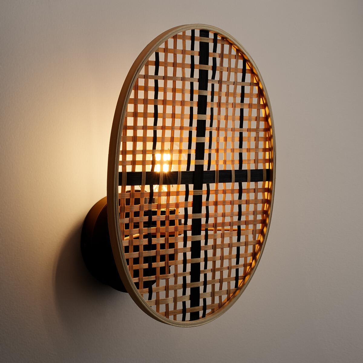 Once turned on, the Katia wall lamp offers a visual spectacle. ? As in a fabric, the bamboo weave casts shadows!