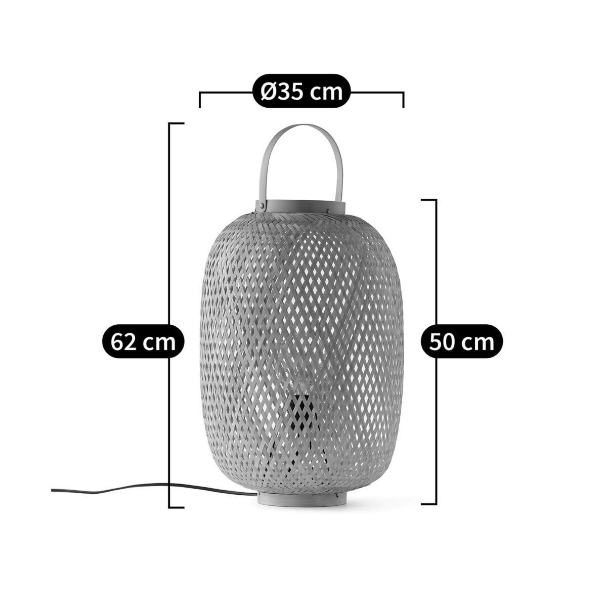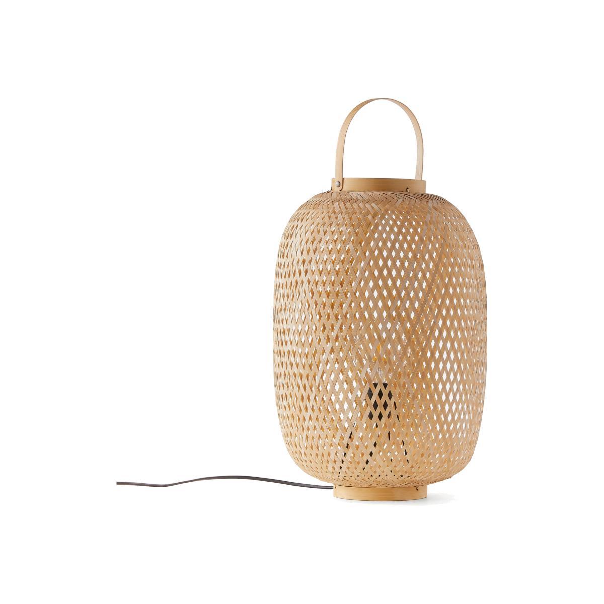 Get the natural look with our Katia table lamp: a lantern-inspired light composed of a woven structure crossed with bamboo fibres for a soft diffusion of light. Equipped with its own integrated handle, this "lantern" will gently light your home from the ground. Also available in a larger size.
