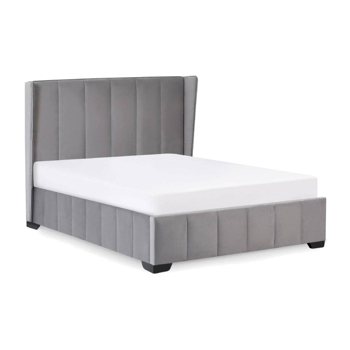Experience the perfect combination of comfort and with this elegant winged bed. Finished in a soft-touch grey fabric, it features a high winged headboard with elegant vertical paneling, offering a supportive and luxurious feel. The lift-up base opens smoothly to reveal hidden storage, ideal for keeping spare bedding, clothes, or everyday items neatly out of sight. Constructed using sustainable materials, its a smarter choice for a more considered living space. Designed with both form and function in mind, its easy to assemble and built for lasting comfort. Assembly required. Mattress sold separately