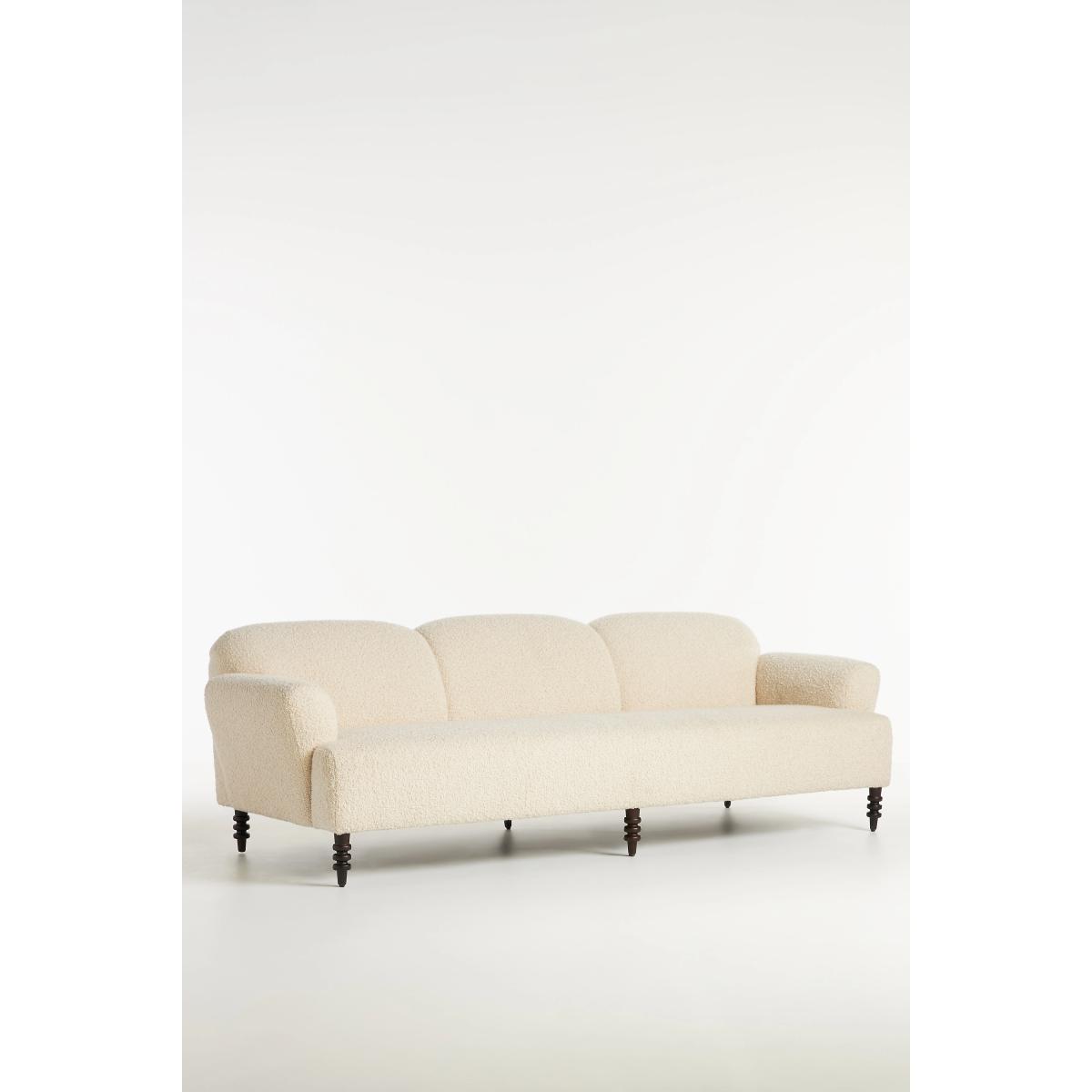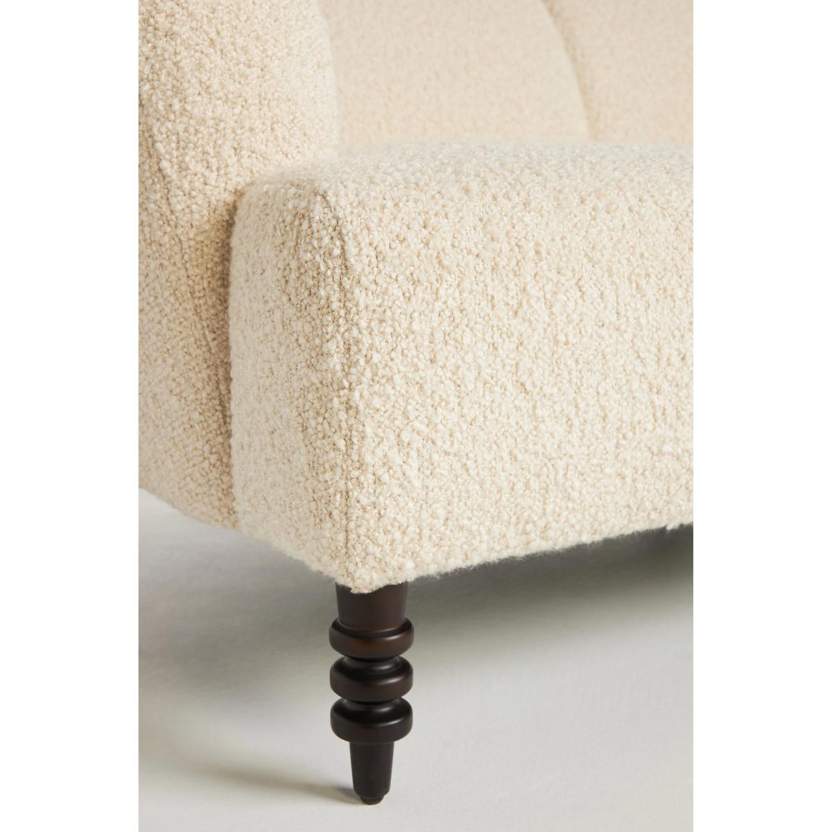 Based in LA, interior designer Katie Hodges fuses her favourite qualities of the city into her work – organic shapes, timeless silhouettes, and showstopping designs. Light and airy like the Pacific Ocean breeze, this sofa exudes the feeling of watching a coastal sunset. Breathe life into your space with Katie Hodges’s home collection – designed exclusively for Anthropologie. Artfully balanced with a casual design sensibility, this imaginative and oh-so-polished collection offers playful silhouettes, plenty of texture, and light-as-air details. * By Katie Hodges * Exclusively for Anthropologie * Bouclé upholstery: 56% Acrylic, 37% Cotton, 7% Polyester * Cushion content: Foam & fiber * Sinuous spring seat construction * Kiln-dried hardwood frame * Corner block joinery * Removable, turned birch legs; hickory finish * Professionally clean * This piece is intended for indoor use * Some assembly required * Imported