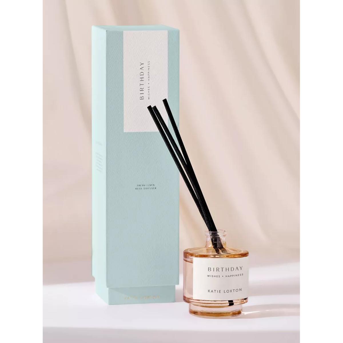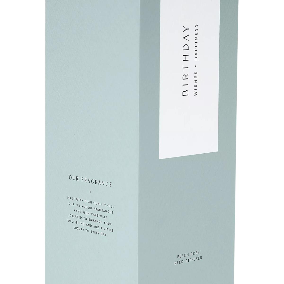 Introducing the 'Birthday' Sentiment Reed Diffuser from Katie Loxton. Bursting with the refreshing scent of Peach Rose And Sweet Mandarin, the one-word sentiment stamped to the front and elegantly encased in a chic gift box, it makes every unboxing moment truly special.