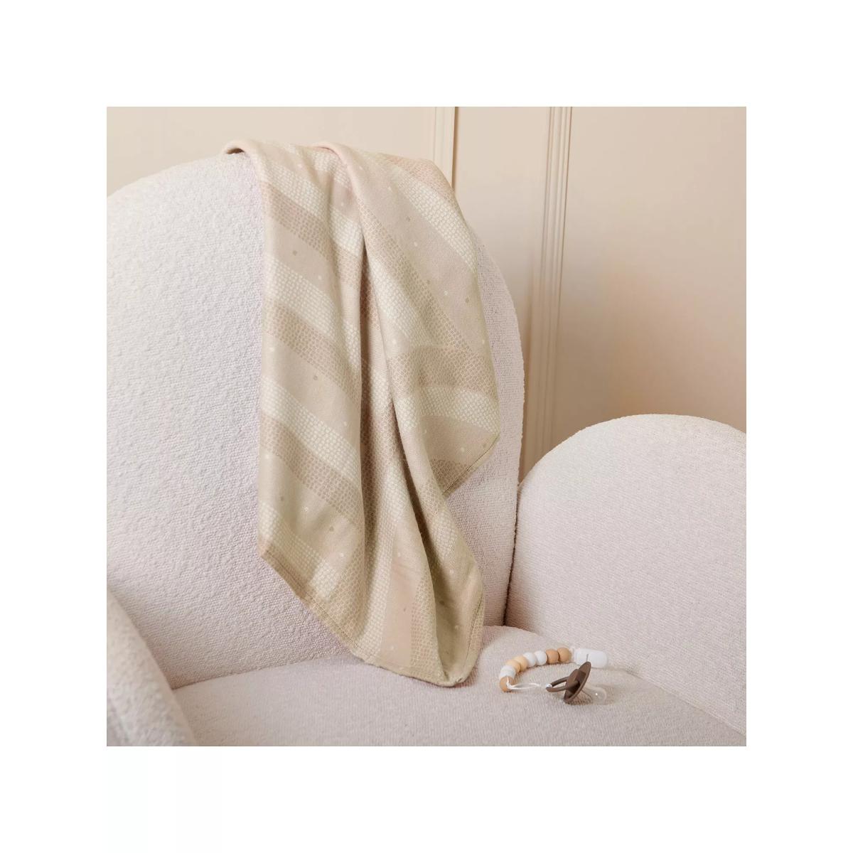 I love this little one blanket for its soft, neutral tones and understated texture, making it a versatile piece for a range of nursery styles. It works particularly well in modern, minimalist interiors where subtle tactile details add warmth, as well as in Scandi-inspired spaces with a calm, natural palette. Practical styling tips include layering it over a gentle crib or cot, pairing it with plush cushions or soft toys for cosy visual interest. Its gentle hue also makes it easy to incorporate into neutrally decorated rooms, but it can equally be paired with pastel accents or colourful accessories for a personalised touch. Keeping it neatly folded within easy reach will add a touch of softness to the overall aesthetic while maintaining functionality.
