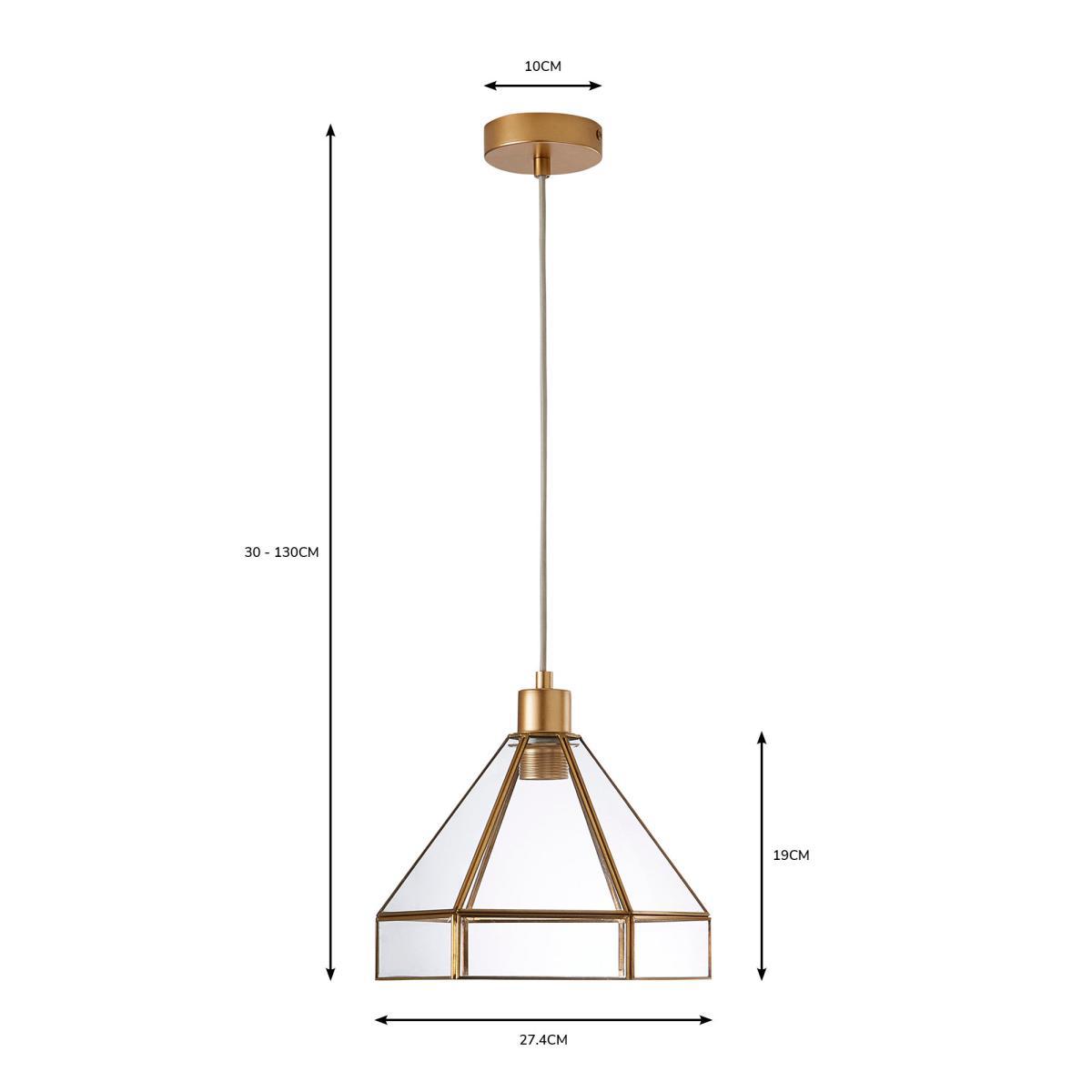 Featuring the stunning Katja 1 Light Pendant Ceiling Fitting, crafted with a satin brushed gold finish base and a clear glass paneled shade detailed with satin brushed gold edges. This luxurious light fitting has a height adjustable fabric cable and is dimmable compatible with a suitable bulb and light switch. Making this a practical and attractive piece for your home.