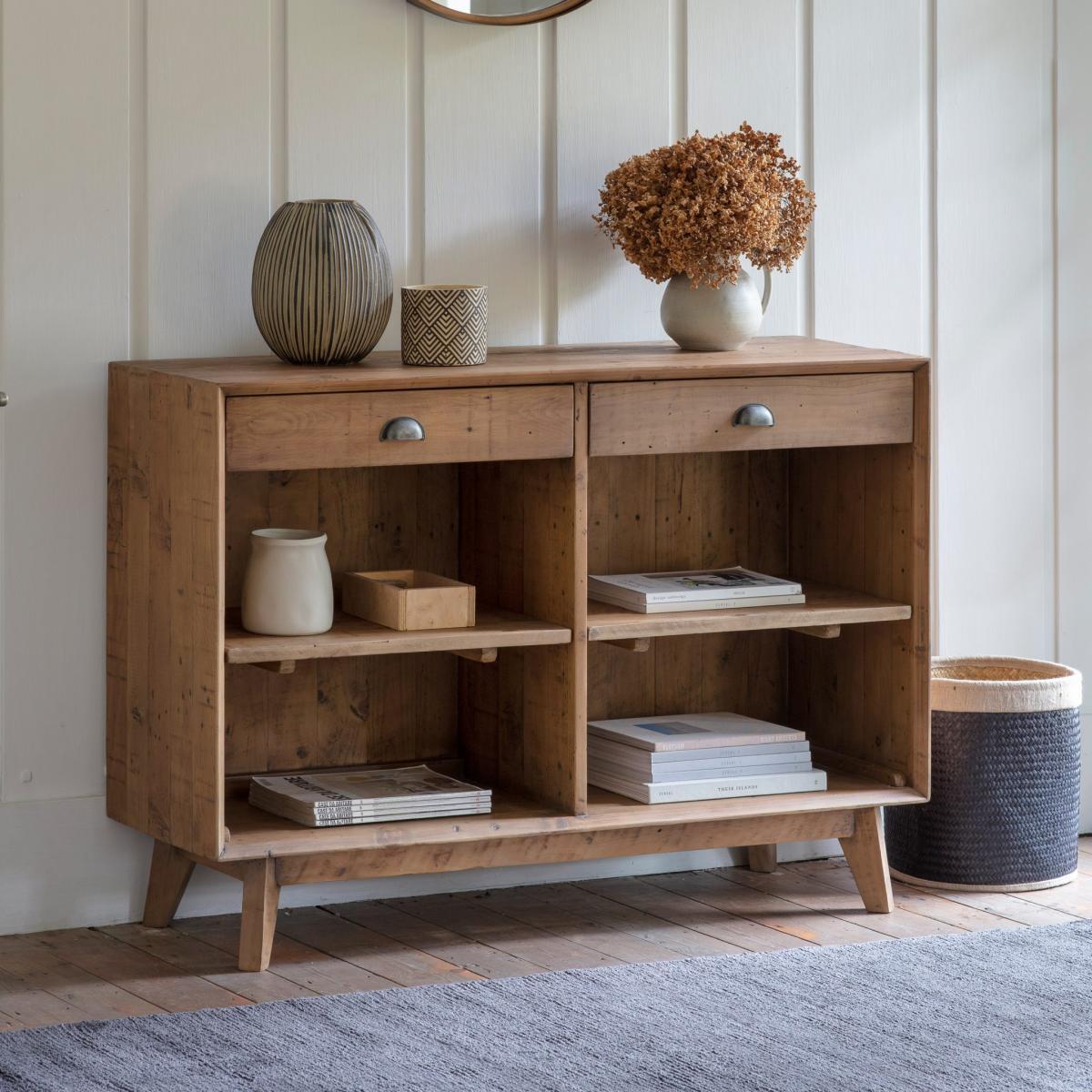 I love this sideboard for its sustainable charm and versatile design-ideal for both modern and rustic interiors. Its recycled pine finish brings warmth and texture, making it a great focal piece in living rooms, dining areas, or even hallways. Practical styling tips include using the top surface for decorative vases or bowls, while the open shelves are perfect for organising books or baskets that can hide clutter. Its space for storage, combined with its neutral tone, allows it to blend seamlessly with various colour schemes and decor styles, from minimalist to farmhouse. Overall, it’s an understated piece that brings both character and function to everyday spaces.