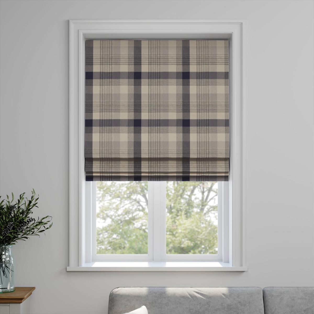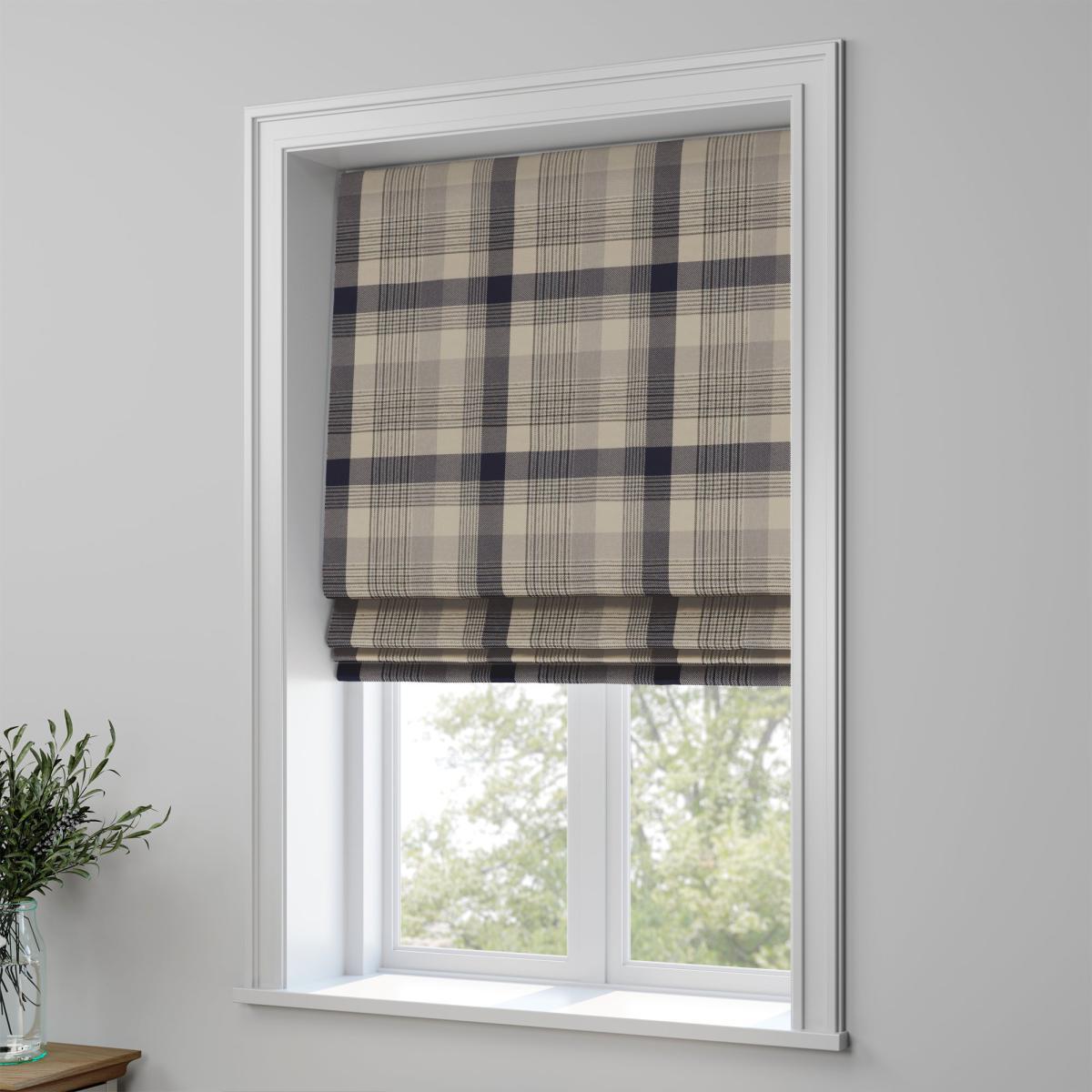 * Choose from 3 linings* Select your fitting type* Pick a side for the operating chain Boasting a luxurious modern check design, the Katrine range of Roman Blinds are perfect for welcoming a personal touch into a room.**Choosing your lining:*** Blackout provides minimal light disturbance in your home making it perfect for bedrooms. * Thermal helps to keep the warmth in and the cool air out meaning it’s great for family rooms or lounges. * Our Standard Lining is perfect if you like the glow of natural light whilst your curtains are closed whilst still maintaining your privacy.**Choosing your fitting type:*** Inside the recess: this gives a tidy, snug finish as it’s made to fit your window exactly. * Outside the recess: this option is great if you don’t want the blind to be visible from the outside when it’s drawn up.**Choosing which side you’d like the operating chain:*** Think about where your blind will be situated and what furniture may be near it – choose the side that is easier for you to access.**Need help deciding or measuring?**Book a free appointment with one of our consultants! dunelm. com/category/made-to-measure/book-an-appointment).**Child Safety:**We add clips to the back of our roman blinds to attach the cords to the fabric. They also double up as a child safety feature. If pressure is exerted the clips will detach to prevent the risk of strangulation. Please read our [Blinds Safety Guide](https://www. dunelm. com/info/buying-guides/blinds-safety-guidance) for more information. If the clips detach accidentally during normal use, they can be easily re-clipped back into place. Please note: If your measured width is over 130cm your blinds may come with a fabric join to provide the full width required.