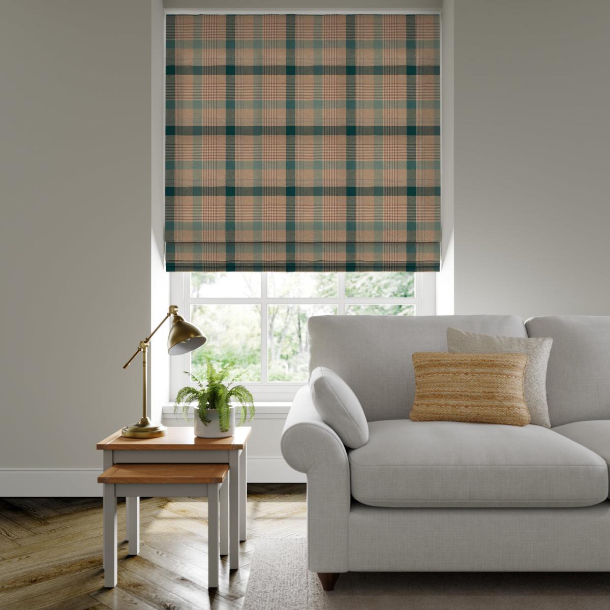 * Choose from 3 linings* Select your fitting type* Pick a side for the operating chain Boasting a luxurious modern check design, the Katrine range of Roman Blinds are perfect for welcoming a personal touch into a room.**Choosing your lining:*** Blackout provides minimal light disturbance in your home making it perfect for bedrooms. * Thermal helps to keep the warmth in and the cool air out meaning it’s great for family rooms or lounges. * Our Standard Lining is perfect if you like the glow of natural light whilst your curtains are closed whilst still maintaining your privacy.**Choosing your fitting type:*** Inside the recess: this gives a tidy, snug finish as it’s made to fit your window exactly. * Outside the recess: this option is great if you don’t want the blind to be visible from the outside when it’s drawn up.**Choosing which side you’d like the operating chain:*** Think about where your blind will be situated and what furniture may be near it – choose the side that is easier for you to access.**Need help deciding or measuring?**Book a free appointment with one of our consultants! dunelm. com/category/made-to-measure/book-an-appointment).**Child Safety:**We add clips to the back of our roman blinds to attach the cords to the fabric. They also double up as a child safety feature. If pressure is exerted the clips will detach to prevent the risk of strangulation. Please read our [Blinds Safety Guide](https://www. dunelm. com/info/buying-guides/blinds-safety-guidance) for more information. If the clips detach accidentally during normal use, they can be easily re-clipped back into place. Please note: If your measured width is over 130cm your blinds may come with a fabric join to provide the full width required.