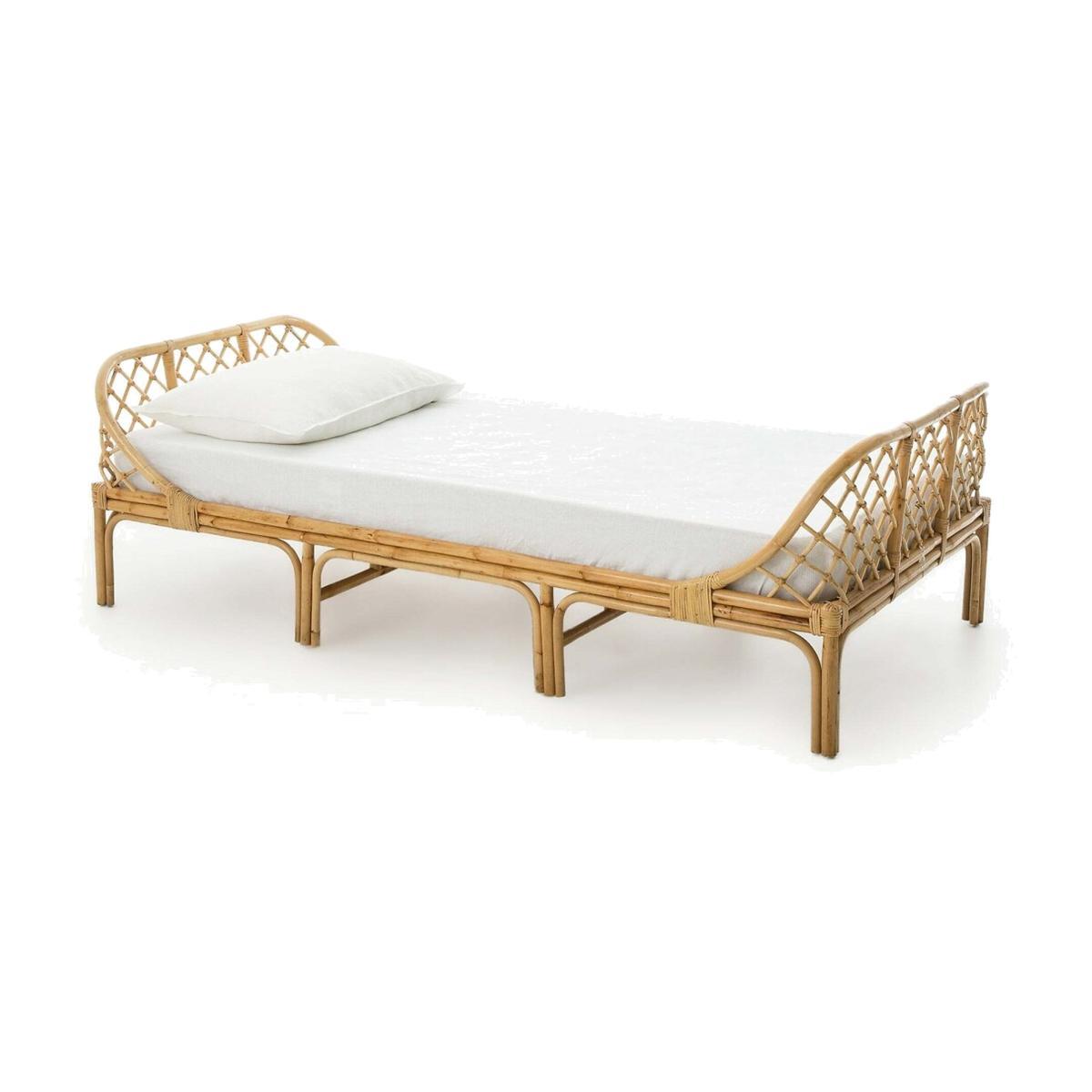 I love this little rattan bed for its airy, organic feel, making it perfect for creating a relaxed and natural nursery or child's room. It works particularly well in boho, coastal, or Scandinavian-inspired interiors, where natural textures and light colours are key. Practical styling tips include pairing it with soft, neutral bedding and adding colourful cushions or throws for a pop of personality. To maximise space, consider placing it against a wall with a wall-mounted shelf or a few hanging planters nearby. Its simple, timeless design makes it versatile for both gender-neutral and more personalised decor schemes.